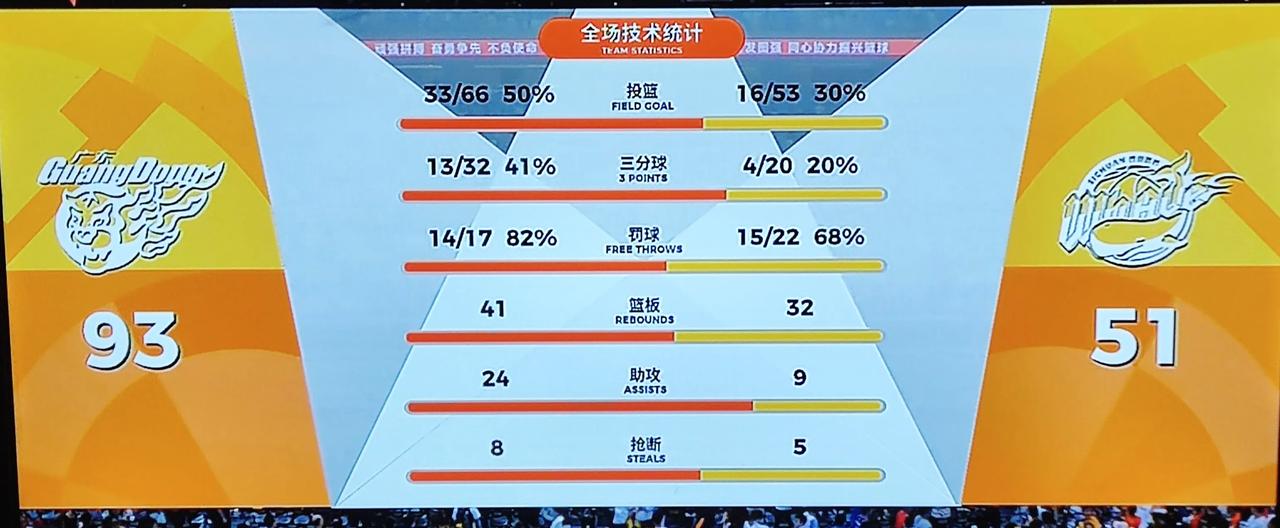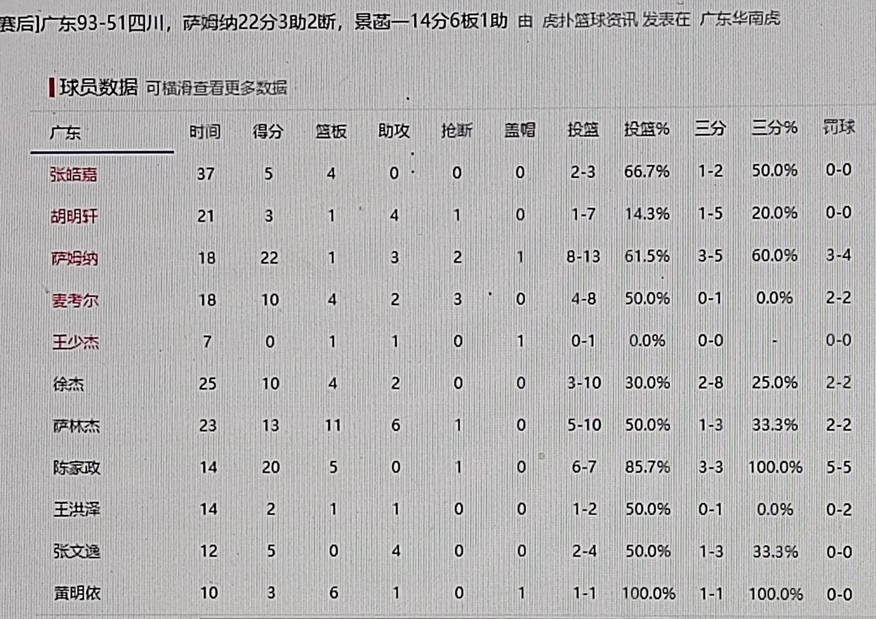 首节13-14输1分,令人啼笑皆非,也就是四川太弱了,上半场广东队其实状态全无,让人想入非非。 半场更衣室里,杜锋拿出三把“尚方宝剑”一把曰书记,一把叫会长,另一把是主任。 宝剑一出,谁敢不从。 别闹了,不然真的让人笑破肚子。 第三节广东队终于认真打,分差就来到初盘的31.5分。末节就是垃圾时间了,陈家政,王洪泽,张文逸,黄明依,张皓嘉有了表演机会。值得一提的是张皓嘉还是首发,打的时间最长,深得杜锋信赖,在他带领下,年轻人打的虎虎生威,特别是陈家政,单节20分,证明自己的实力。