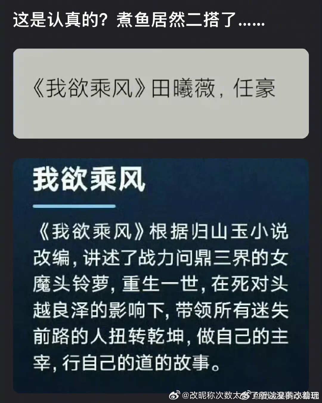 不觉得任豪能当男主,好几年了腾讯给他像样的古偶男主早给了but哪怕确实二搭了但是