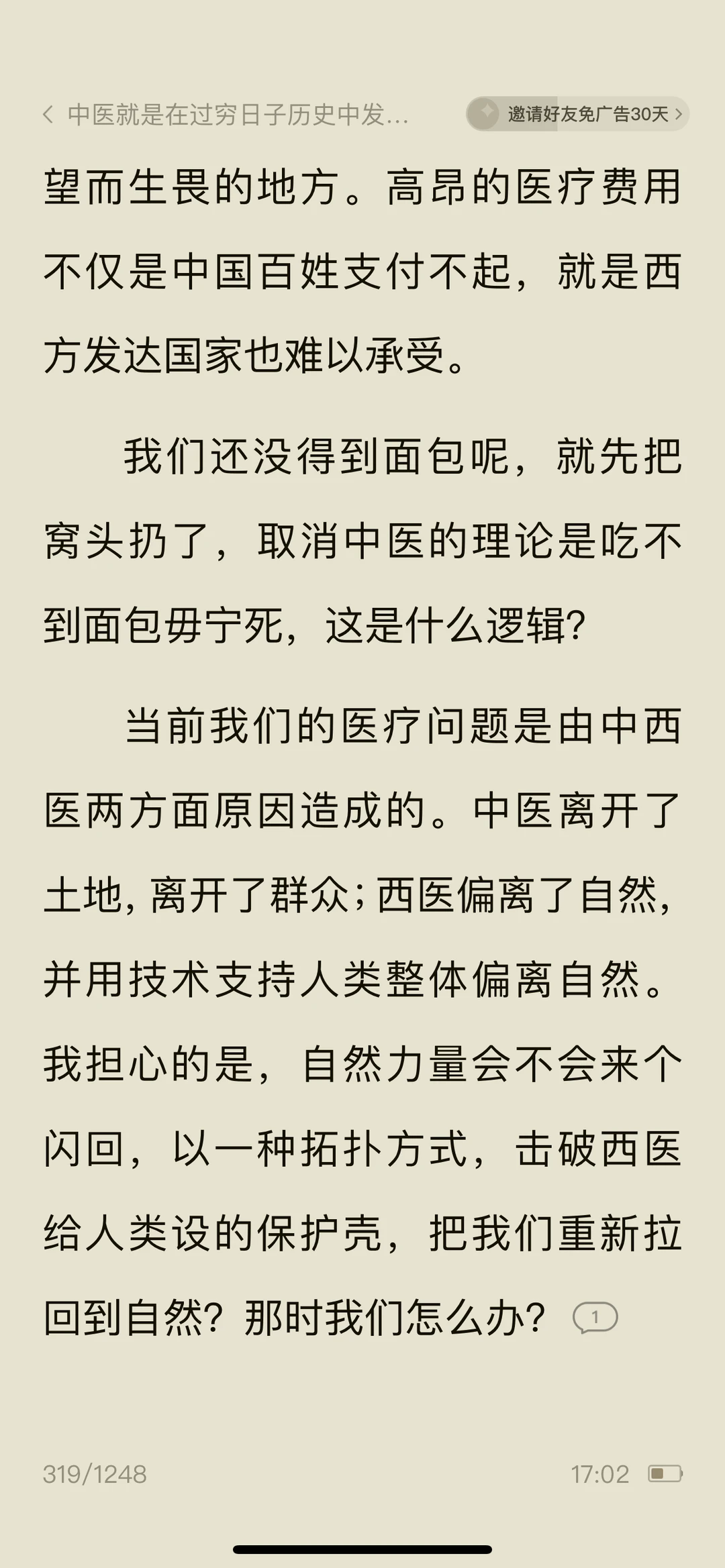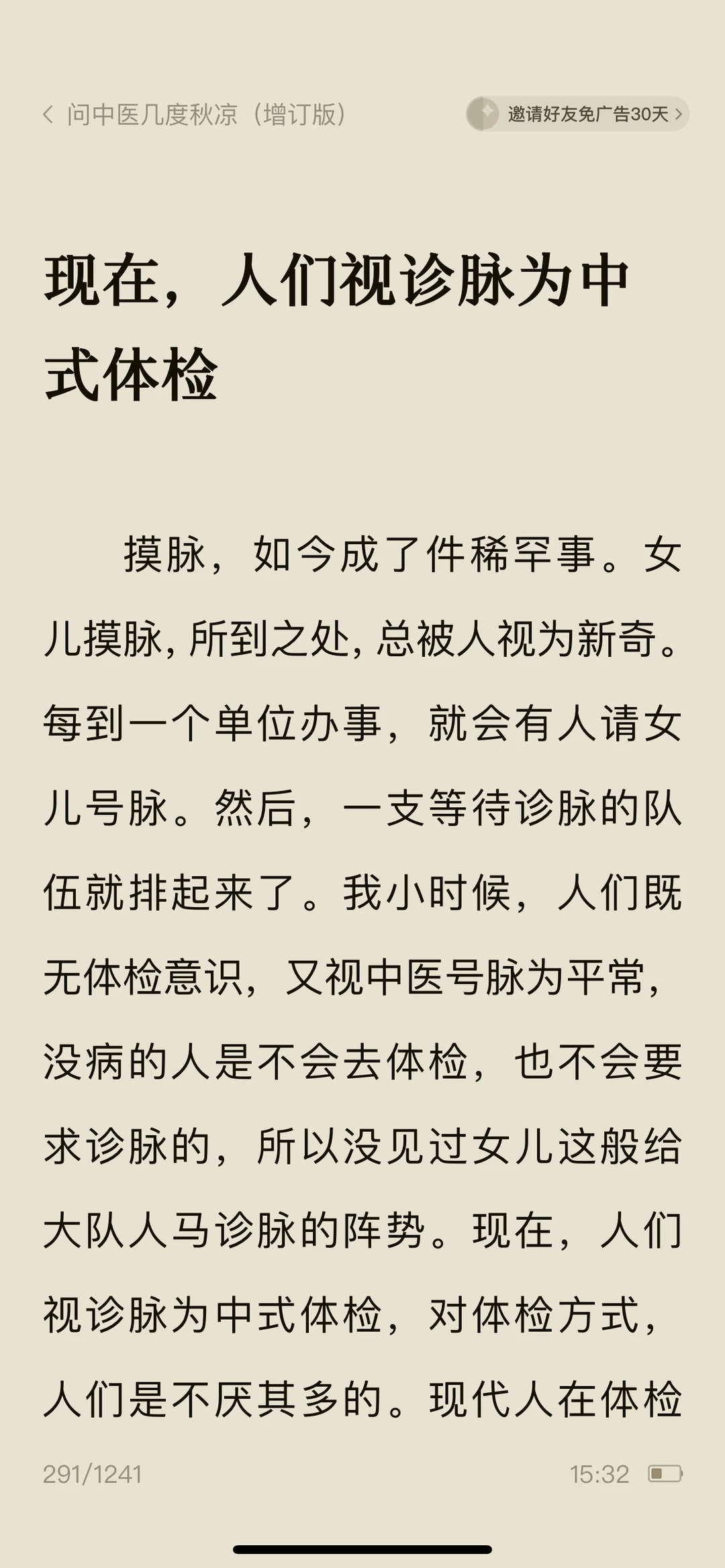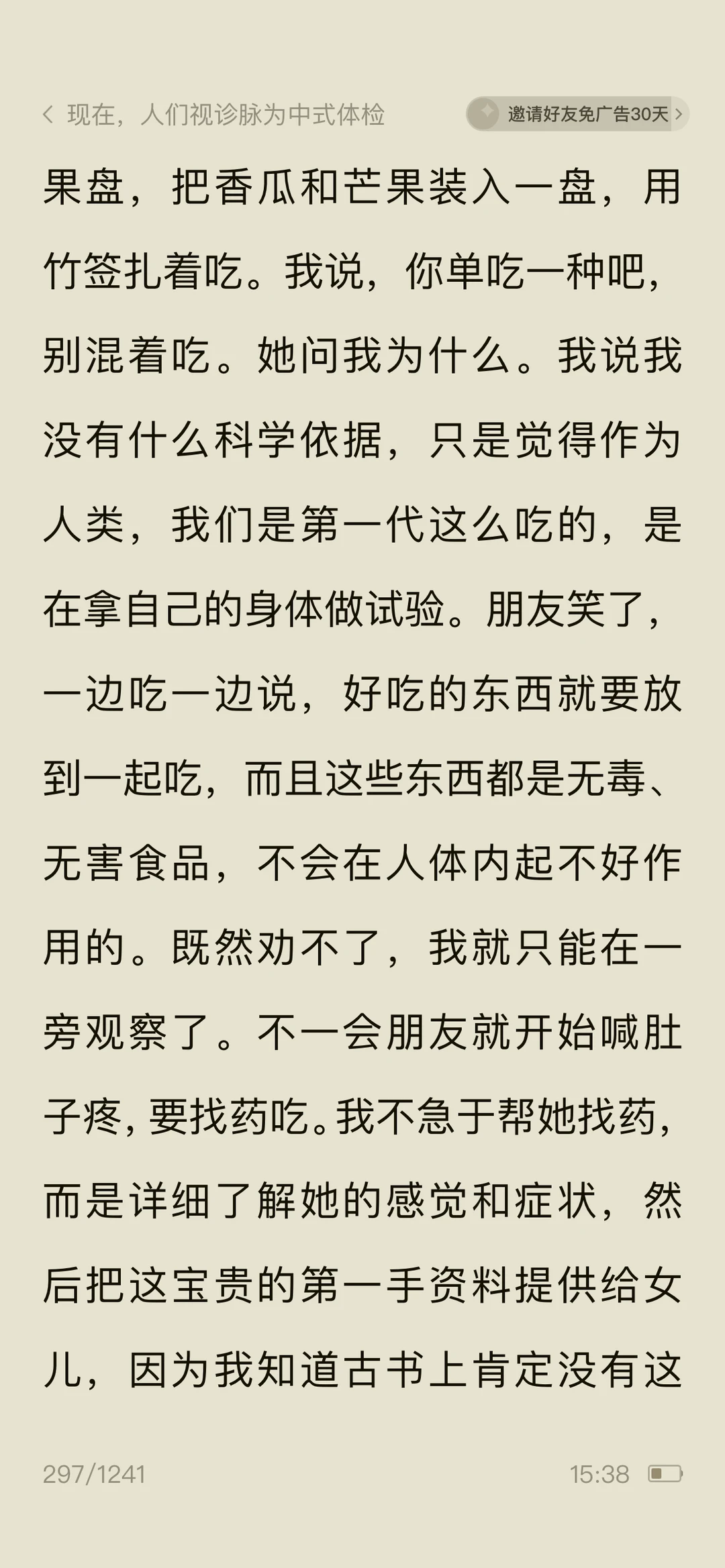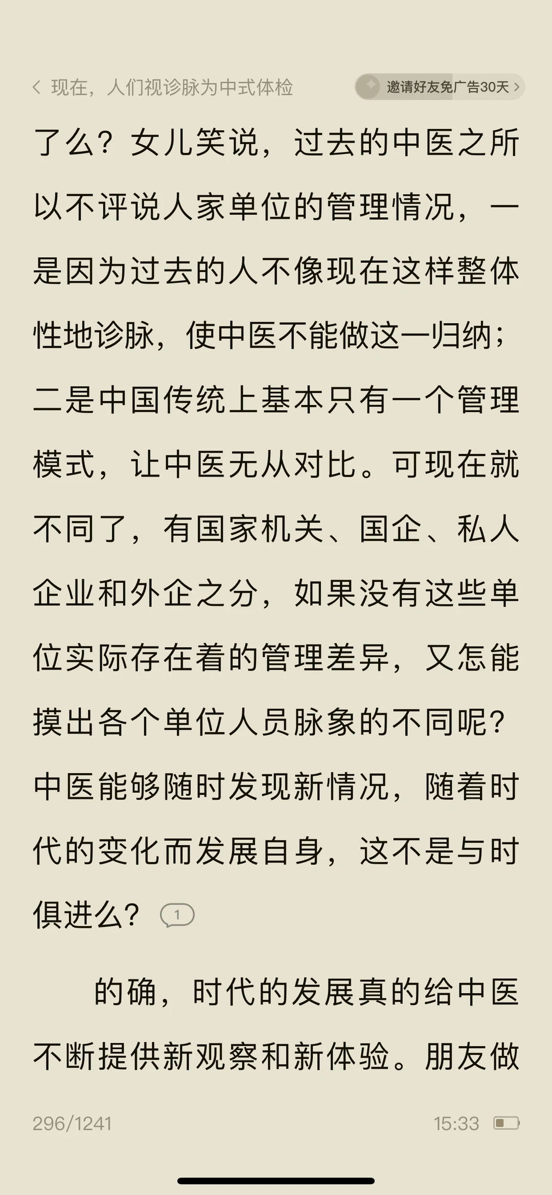 🍀看《问中医……》作者调侃脉诊很准的女儿看病就行,别“算ming”,防止落人口实,女儿说:中医看病注重人的七情六欲,强调人的性格和生活环境对健康的影响,算命的魅力不就在于具有预测性和解析。