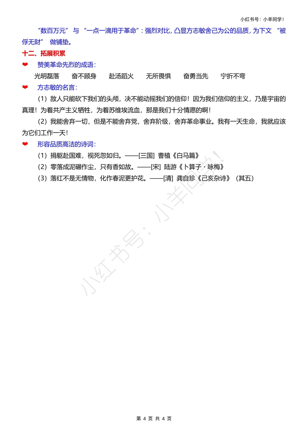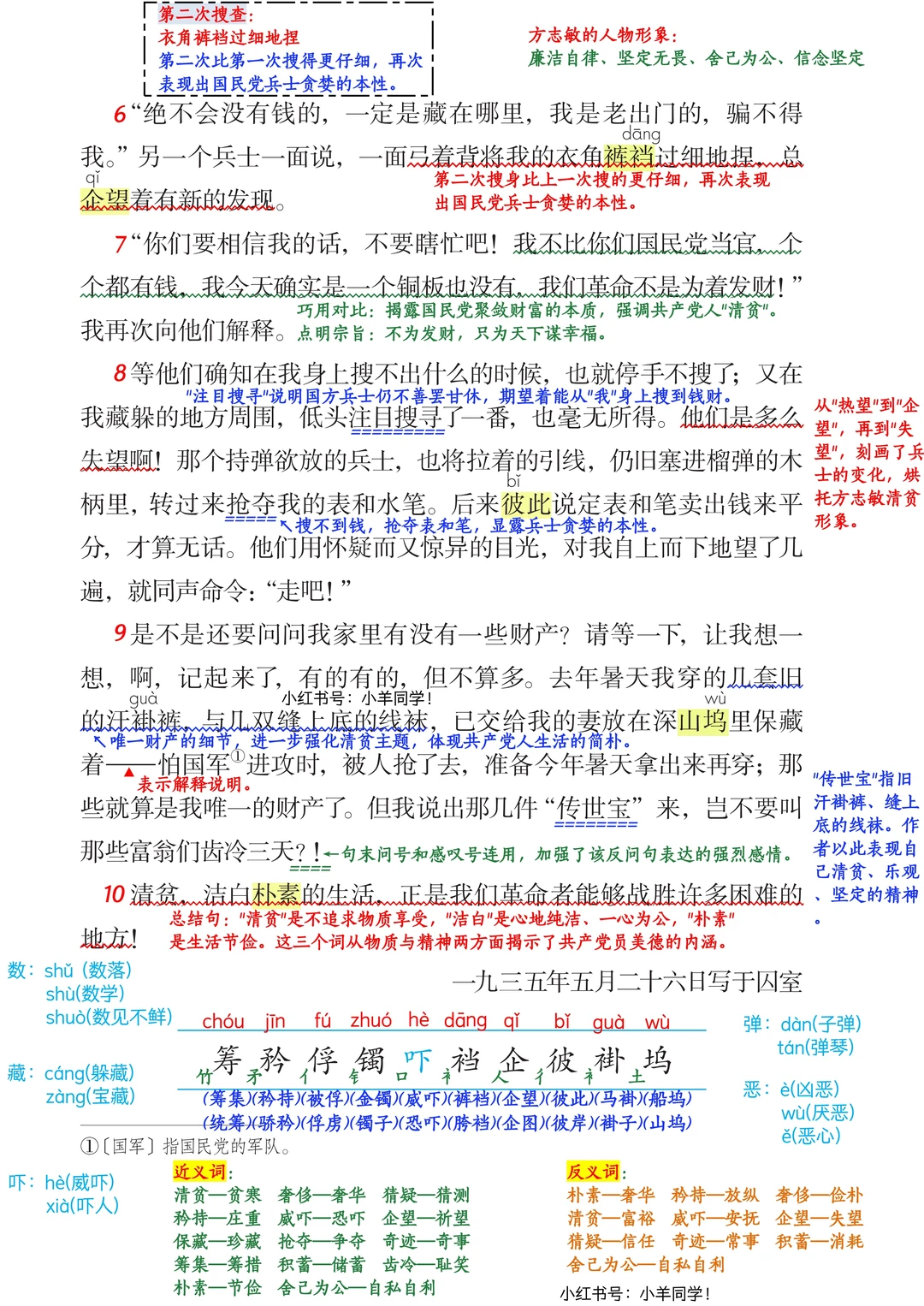 学会「抓人物语言 + 动作 + 神态描写」的方法,分析方志敏面对敌人时的心理变化,深刻感受他恪守清贫、廉洁奉公的高尚品格,这是课文必考的人物形象分析题哦~