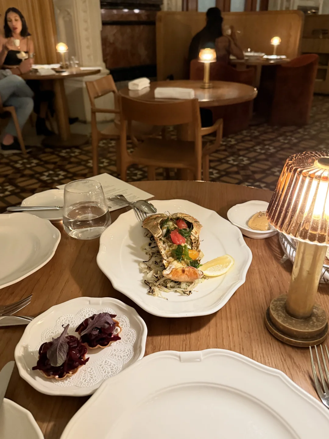 带着新买的小裙子去吃漂亮饭了 漂亮是真的漂亮 难吃也是真的很难吃[笑哭R] 跟个小教堂一样非常精致 拍照很出片 不过来拍照的话还不如坐吧台点杯酒 晚餐真的超级丰富 也很精致 但是一样比一样难吃😟 (不排除我个人吃不惯 )因为软件上评分非常高 两个人吃了500多🔪 (如果可以我想把这个换成澳龙比较实在)[大笑R]