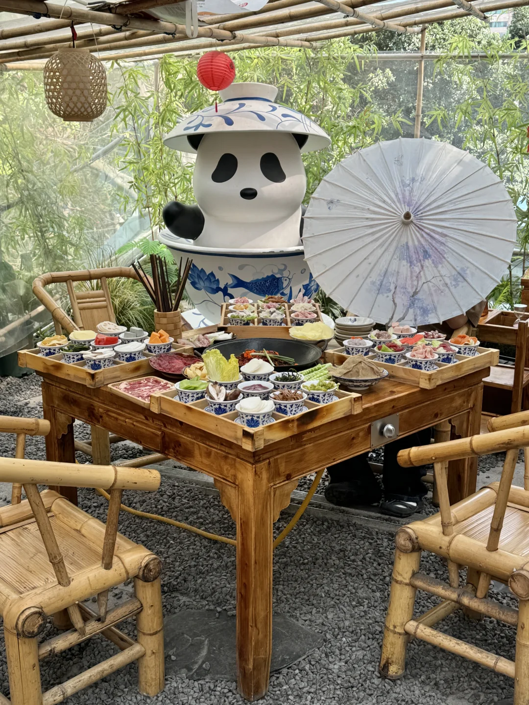 吊龙现切薄嫩涮9秒最佳 耙鸡爪卤香软糯一嗦脱骨~ 毛肚大片脆爽蘸蒜泥香油! 熊猫汤圆糯叽叽解辣 📍渝少侠·熊猫小院火锅(春熙路店)