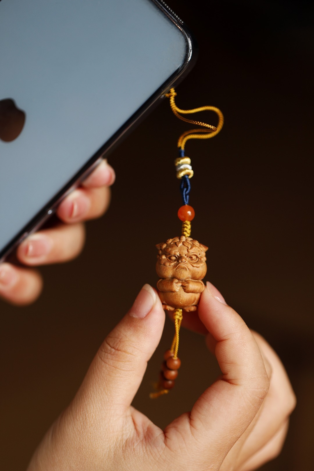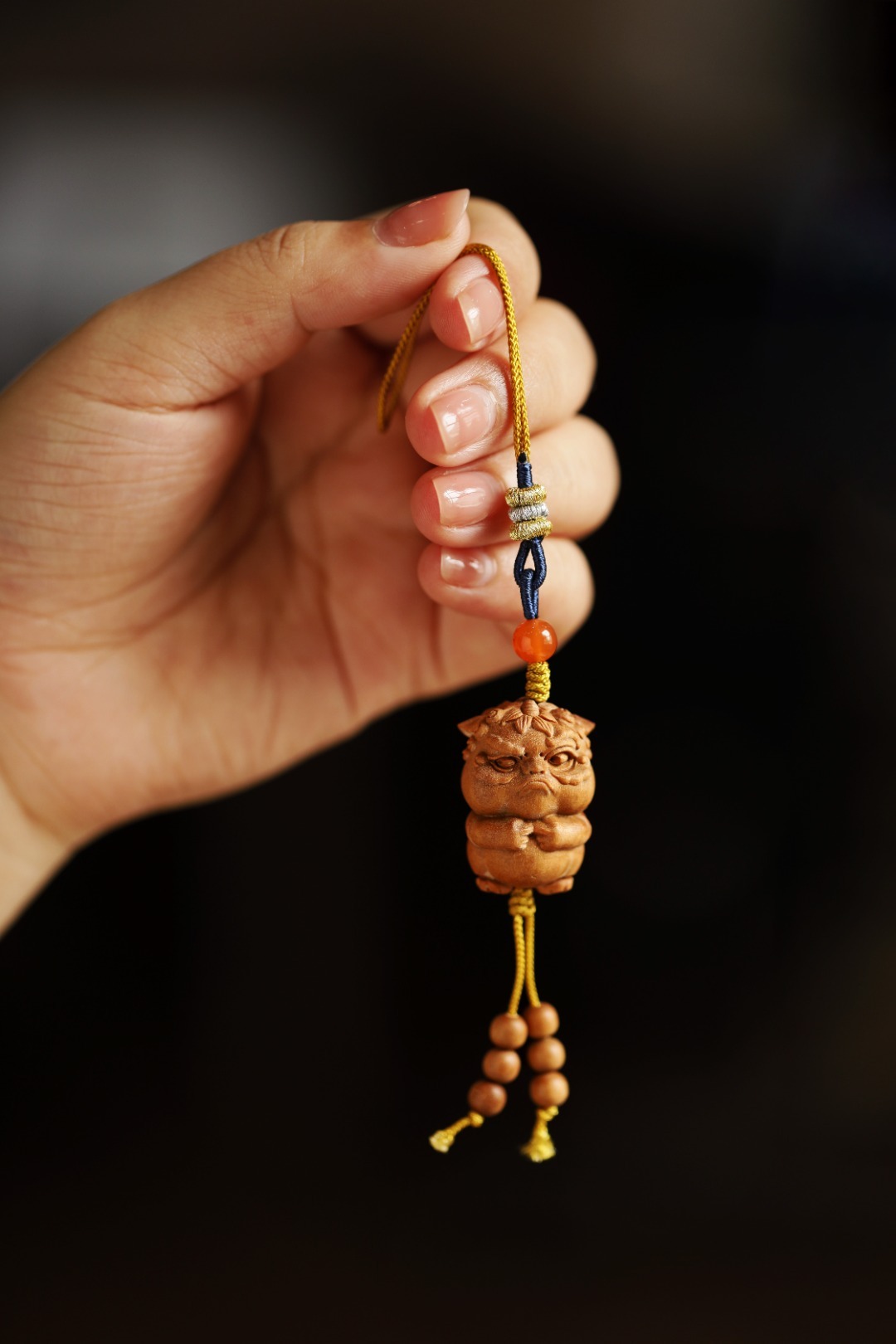 老山檀香 | 小霸王 挂件小霸王村头一霸,霸王貔貅的后代,人送外号小霸王。可作包挂、手机挂、钥匙挂。2.8*2.2*2.2cm 总长15cm 老山檀香 | 小霸王 挂件