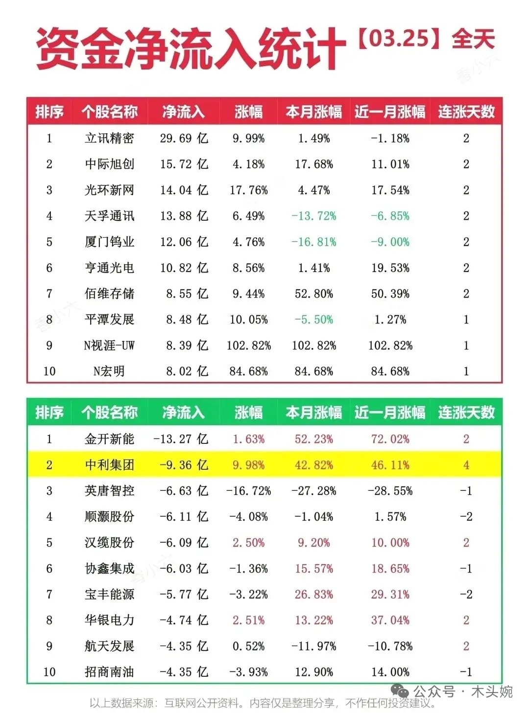 主力净流入TOP20被光模块、算力、贵金属霸榜,立讯精密、中际旭创、光环新网稳居前列,游资也在积极加仓融捷股份、阿莱德等热门标的。