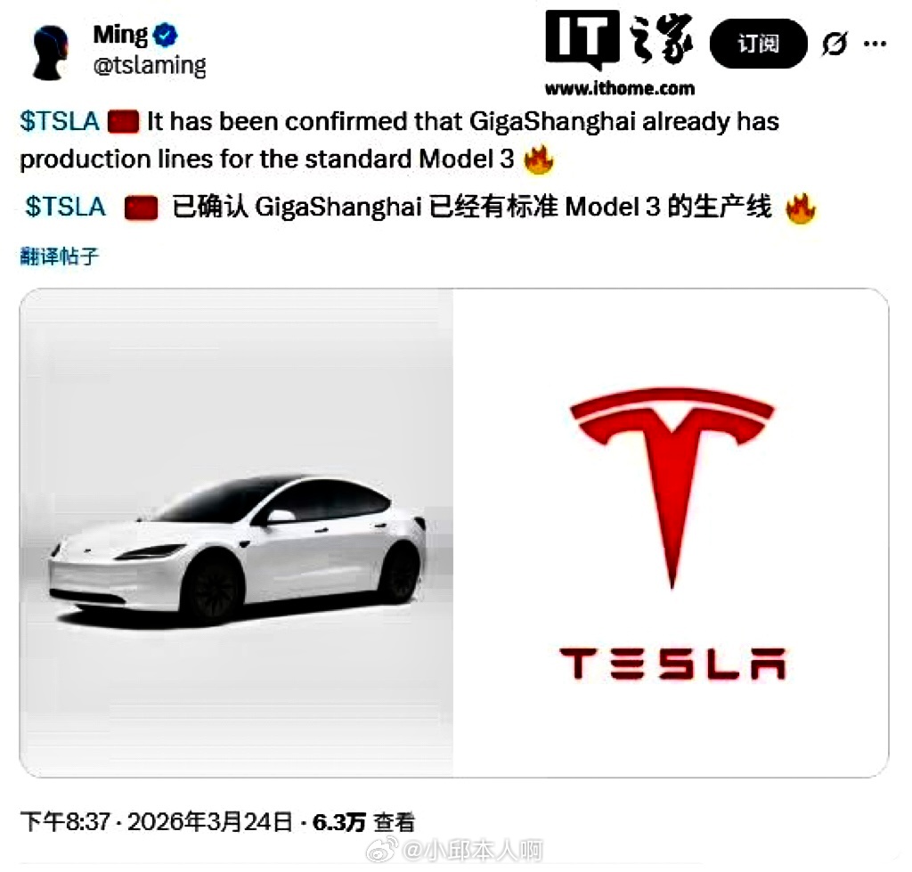 特斯拉Model3标准版或将在华上市特斯拉那个便宜版Model 3要来了!上海工厂生产线都建好了,工信部免税目录里也早就出现过它的身影。