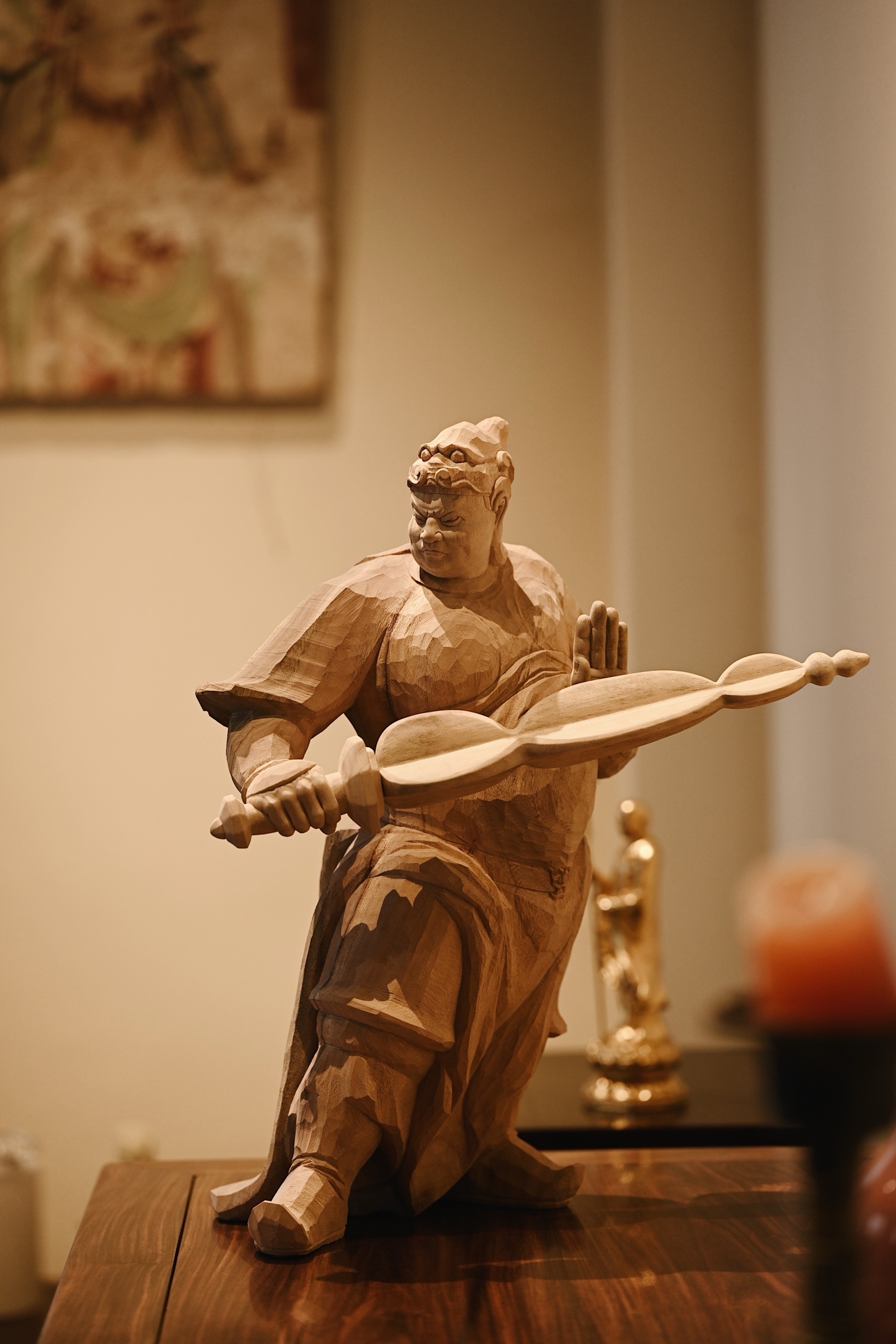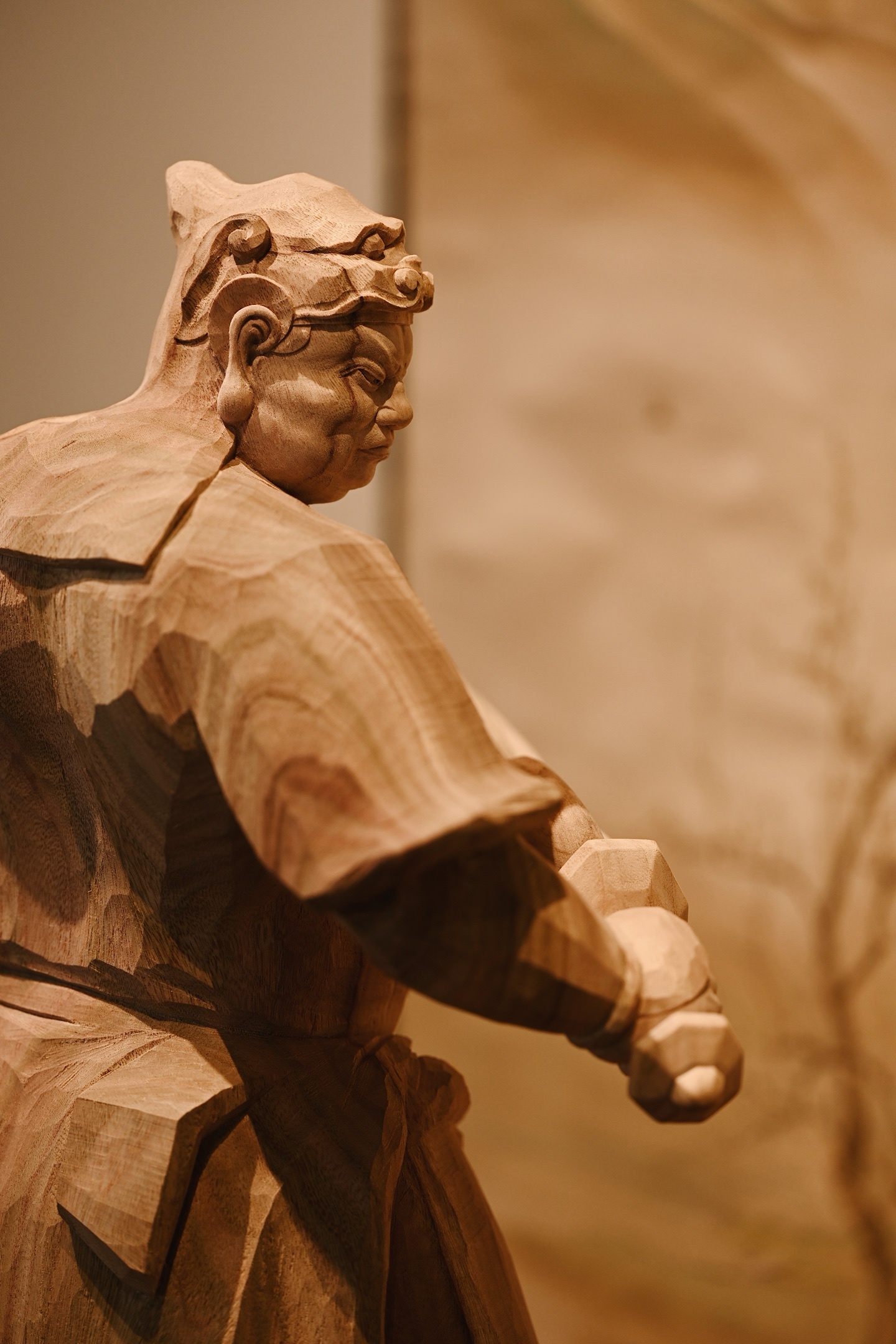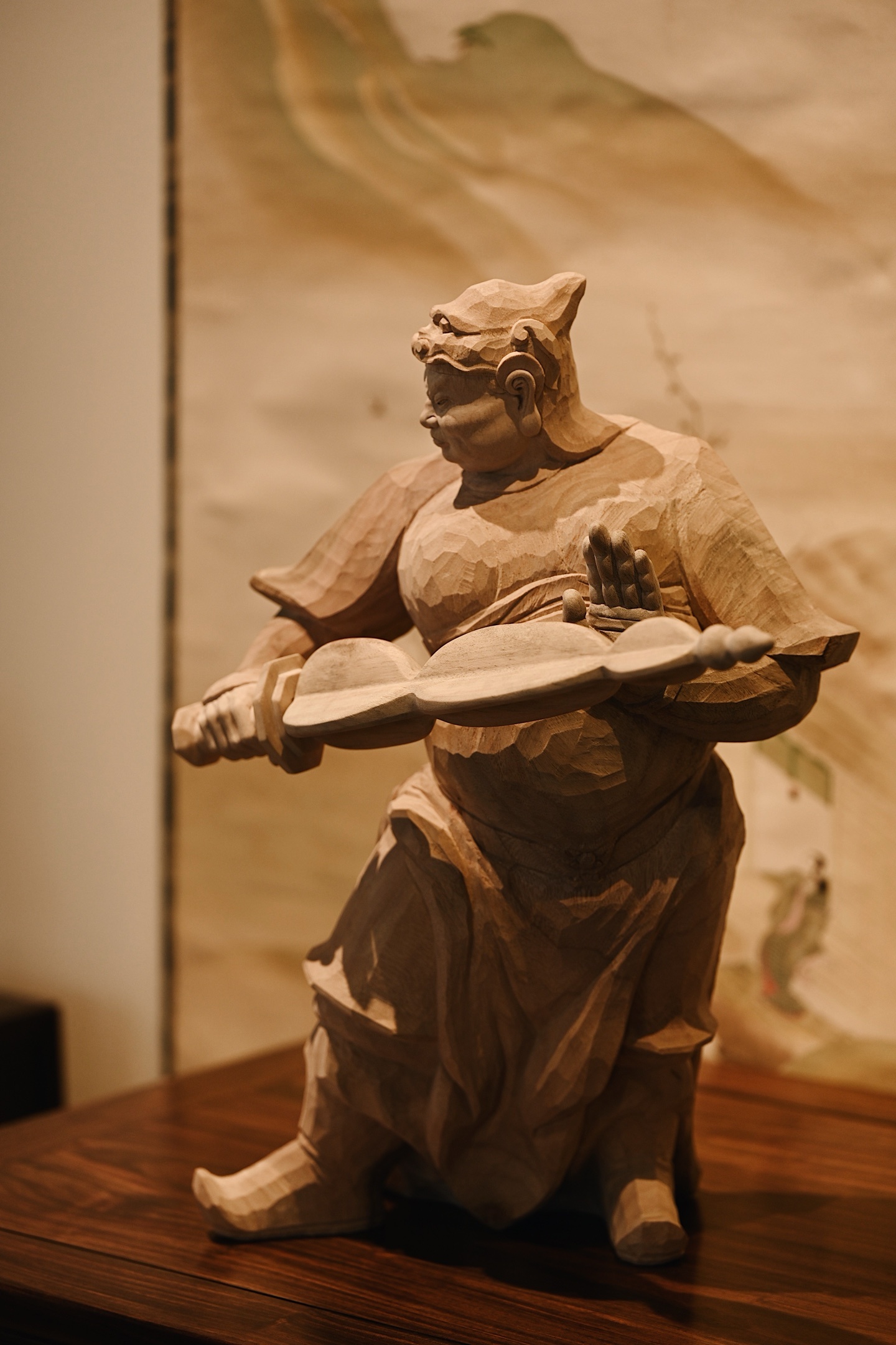 香樟木 | 韦陀快刀雕刻,细腻生动,韦陀头戴凤翅兜鍪盔,相容坚毅,袍袖翻飞,姿态