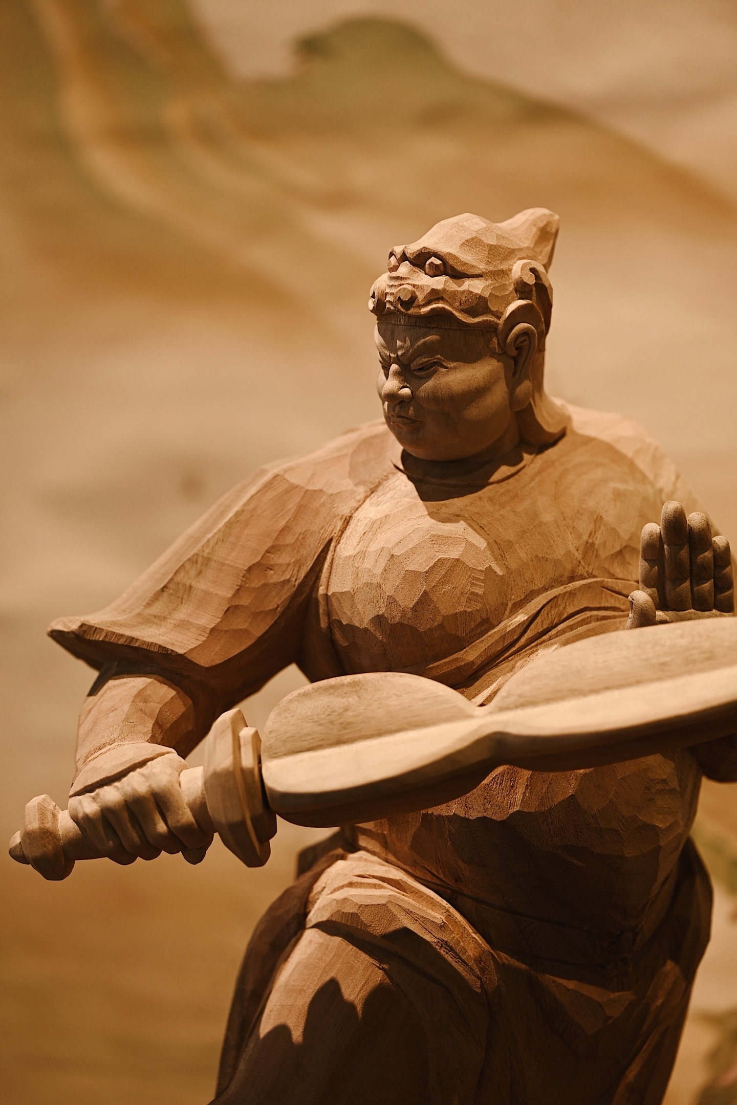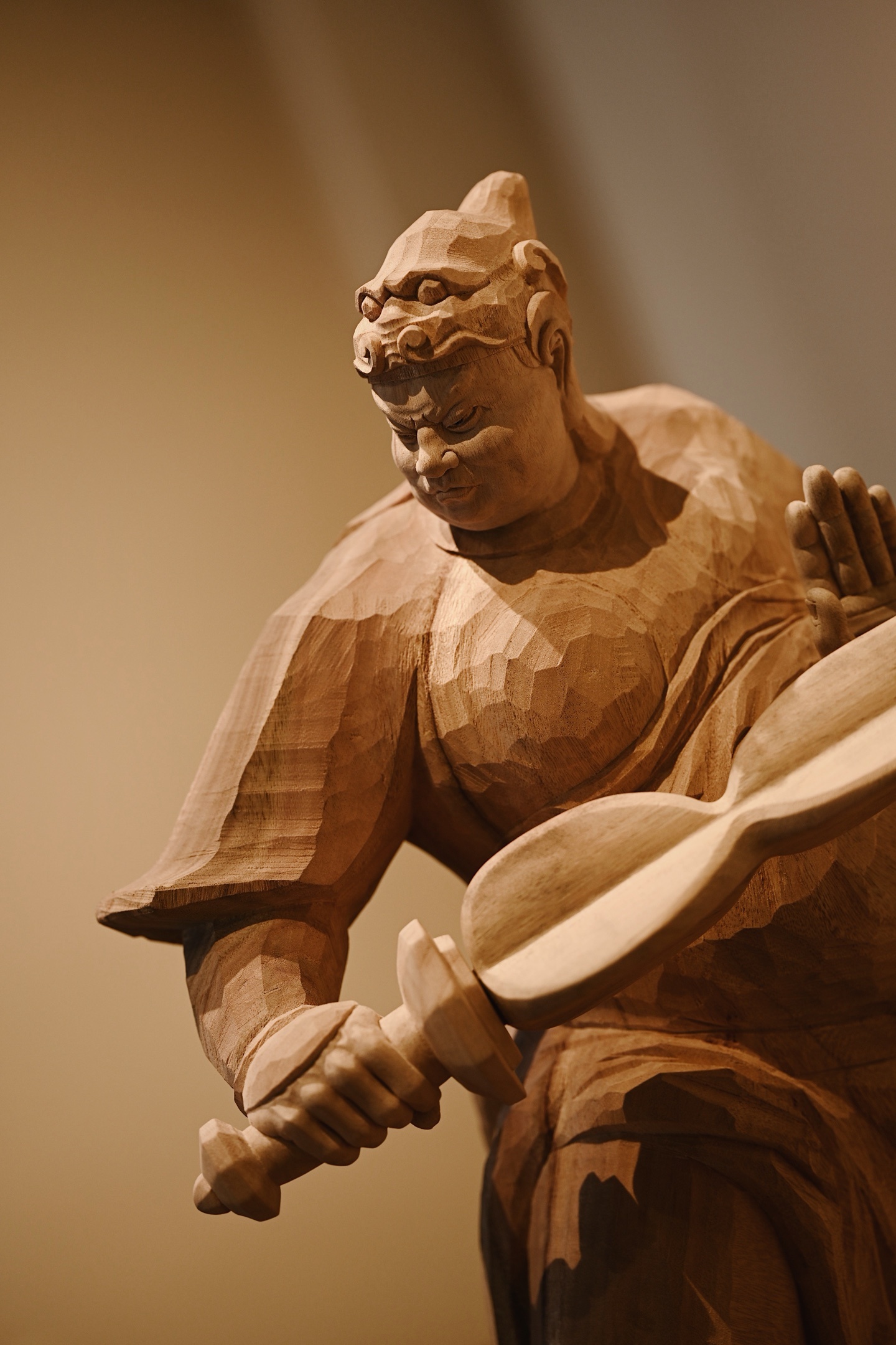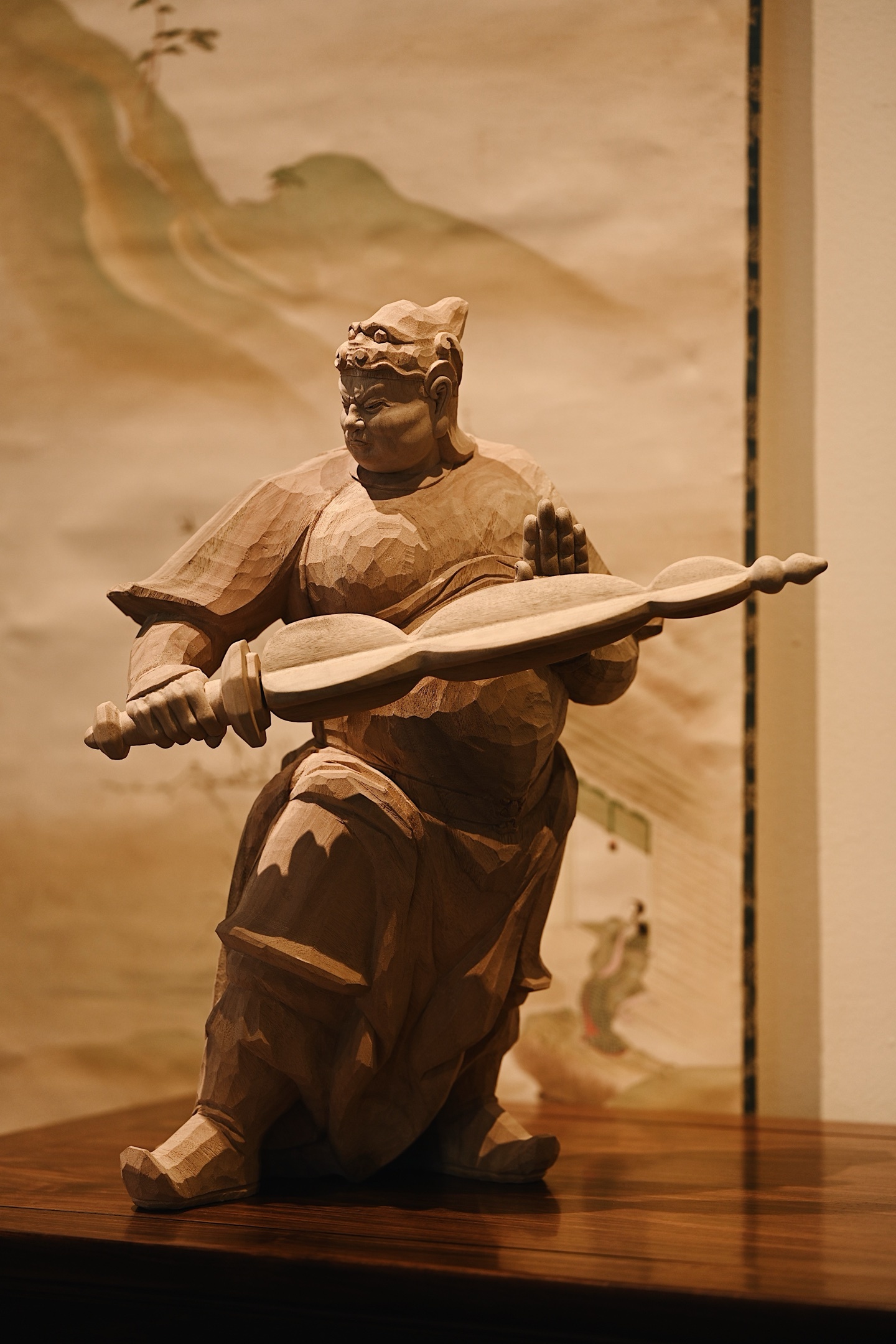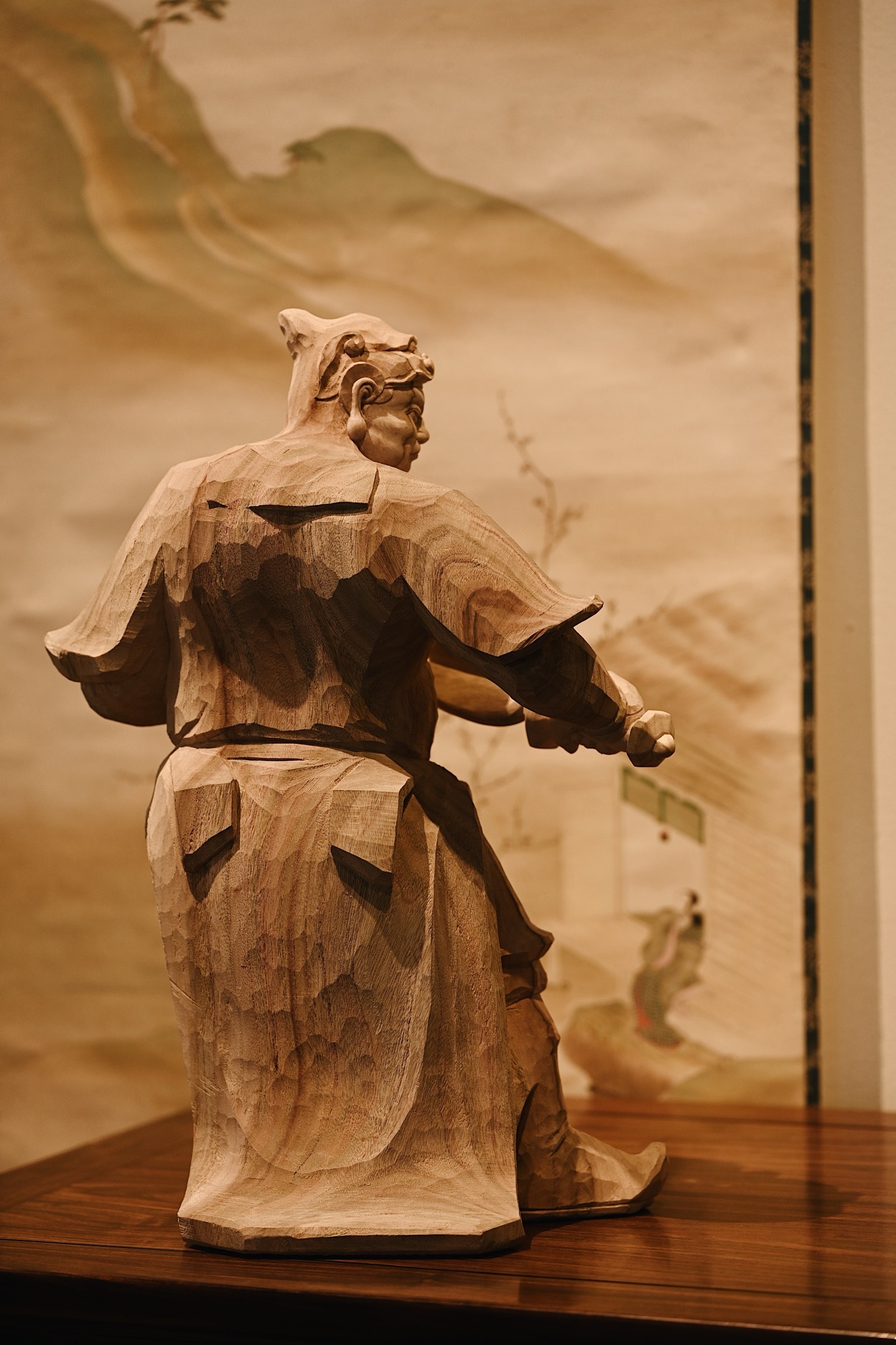 香樟木 | 韦陀快刀雕刻,细腻生动,韦陀头戴凤翅兜鍪盔,相容坚毅,袍袖翻飞,姿态
