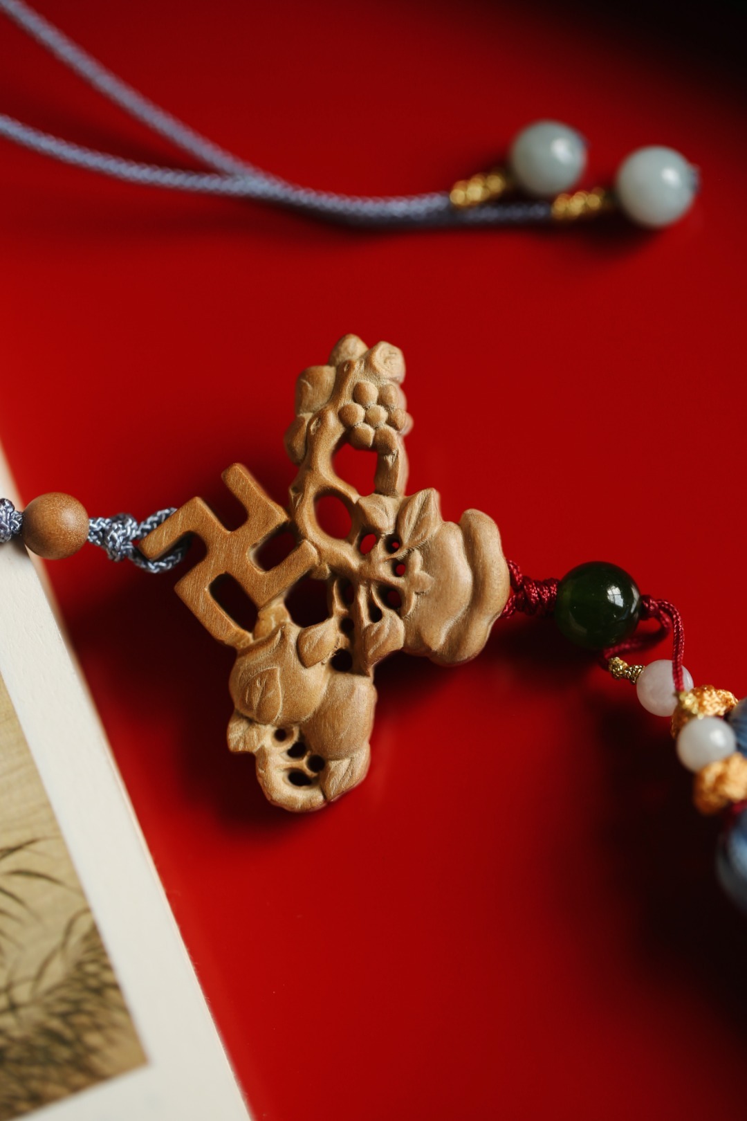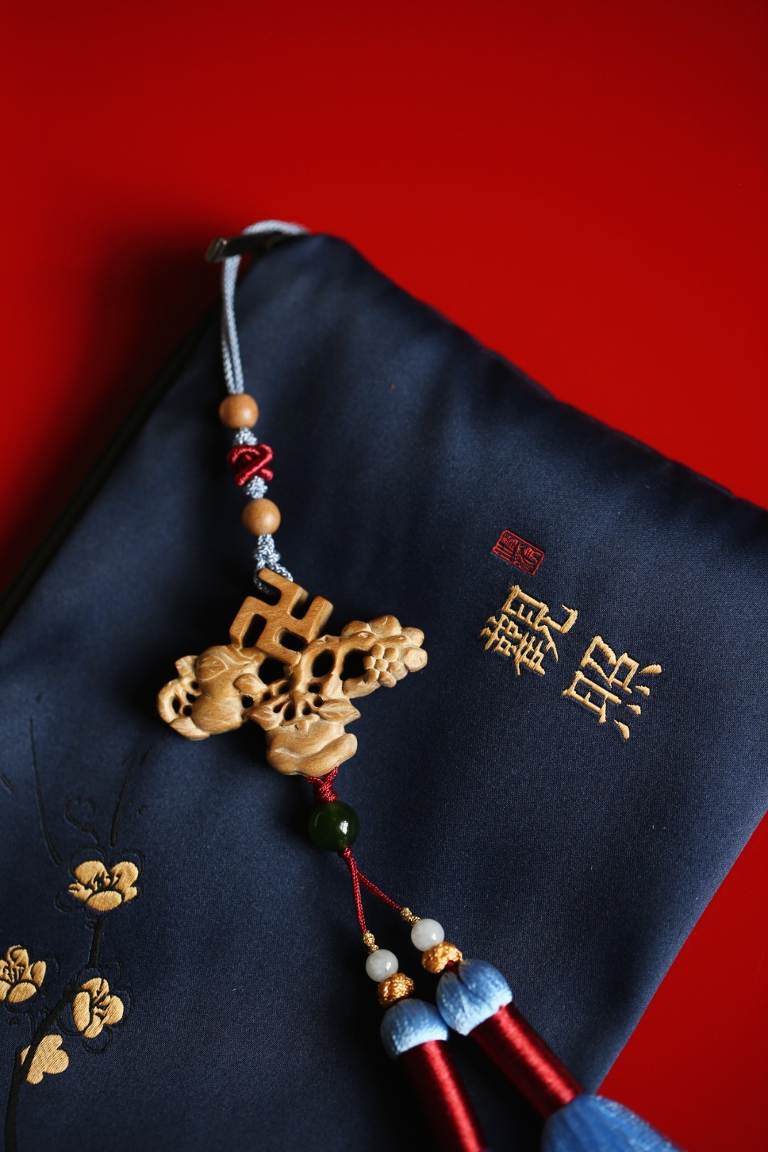 国风设计,形制精美;双面镂雕,万字纹、蟠桃、柿子,寓意“万事如意、福寿双全”。