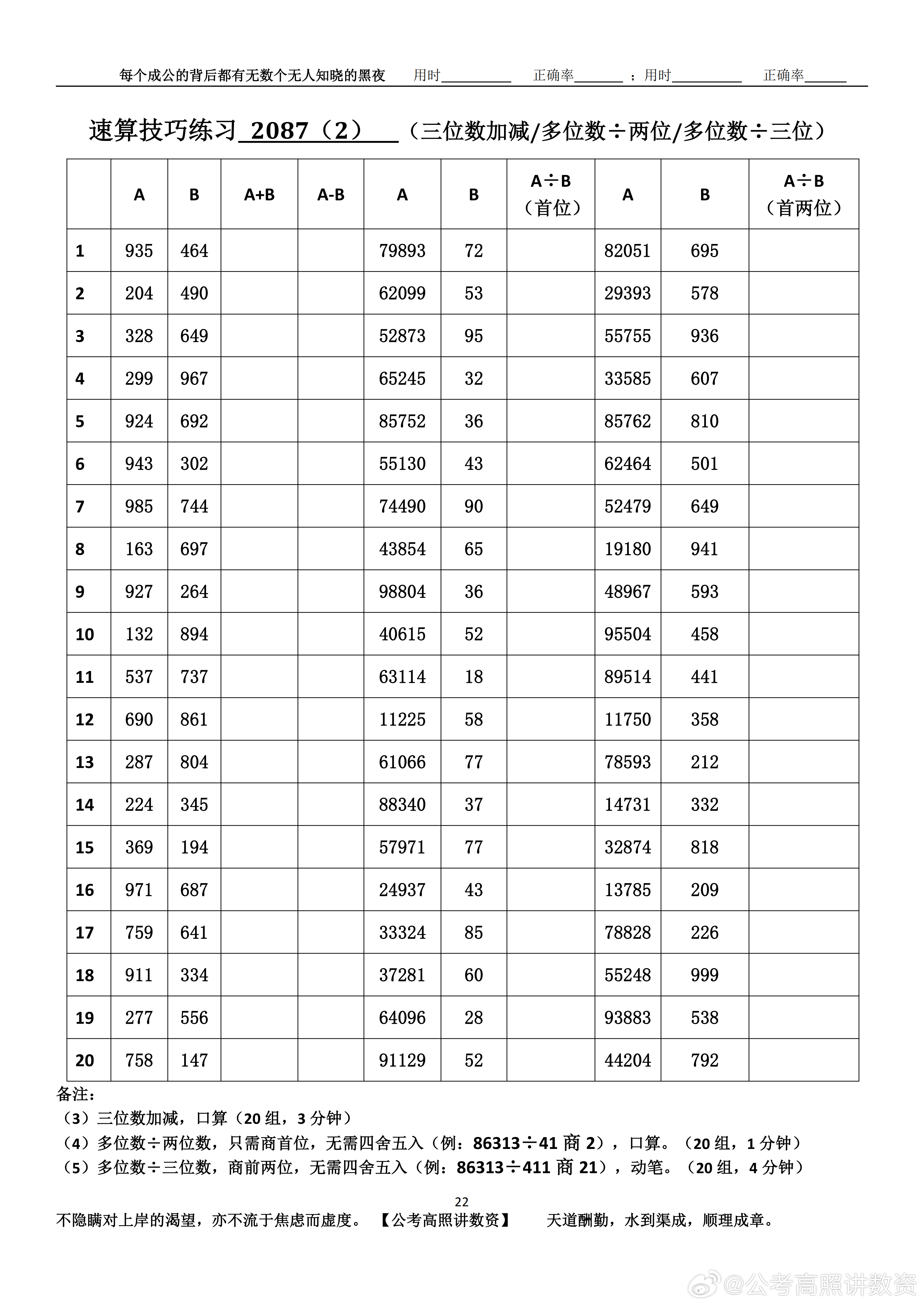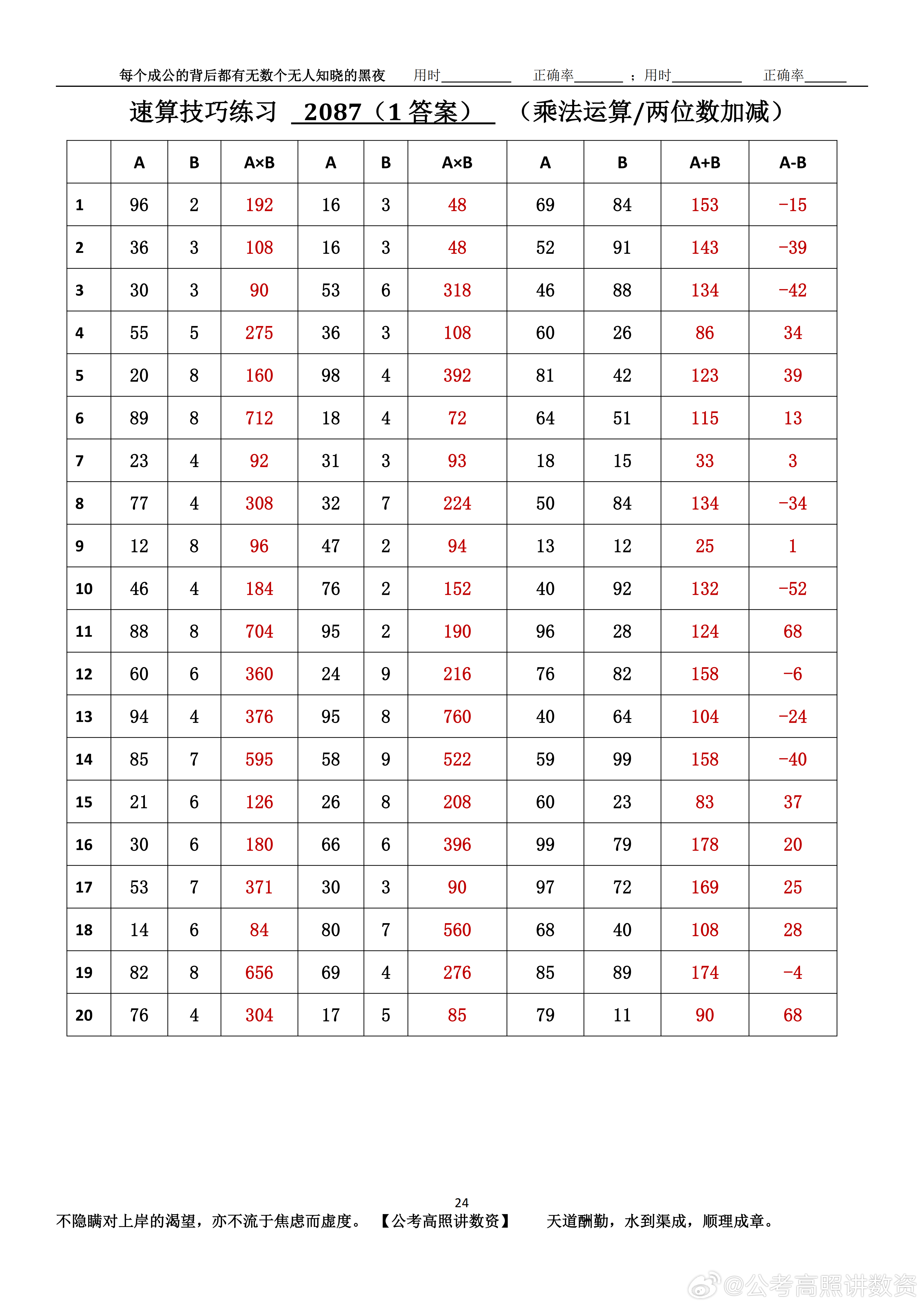跟着高照练速算决战公考 速算练习2087相信自己,努力学习。速算链接汇总:网页