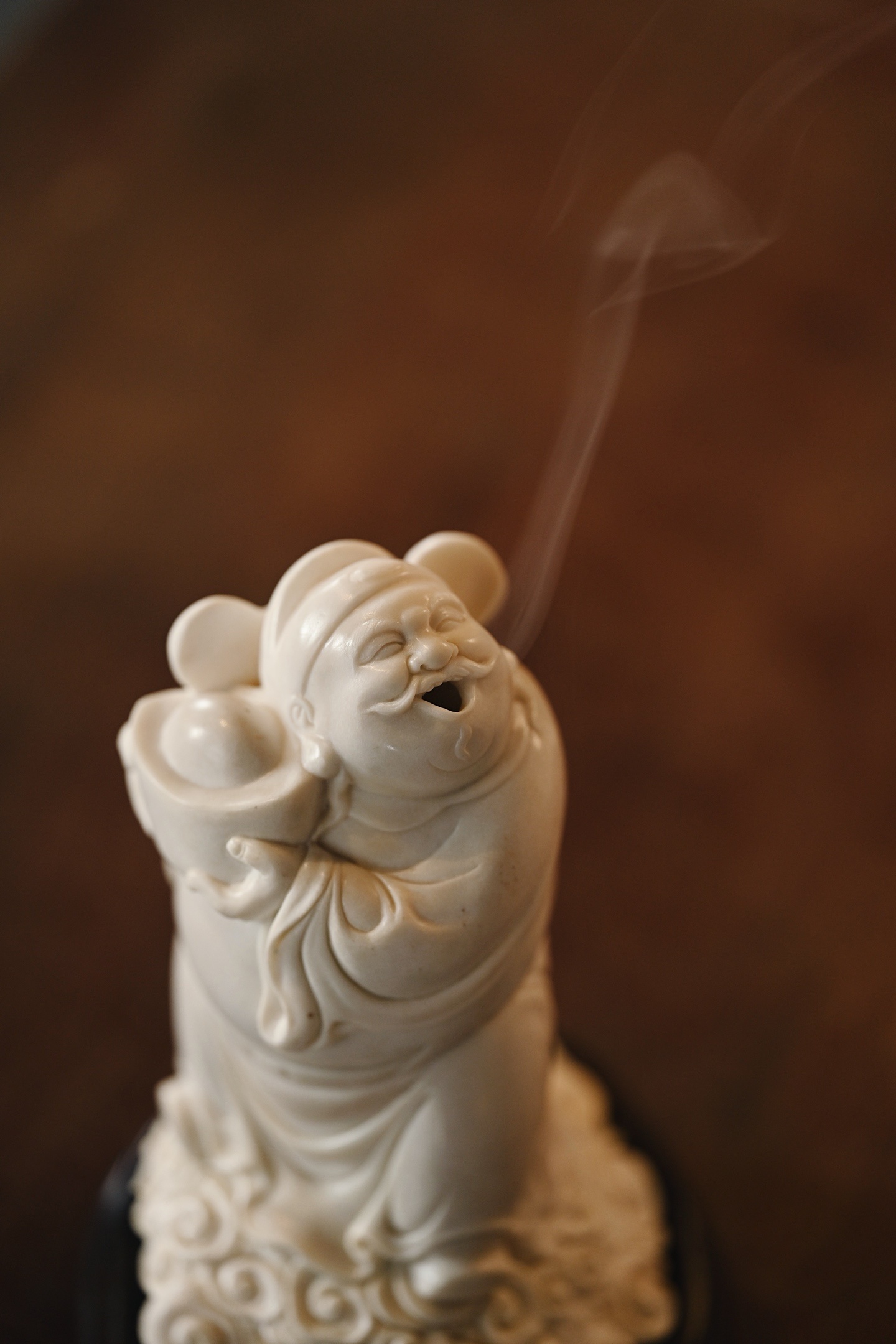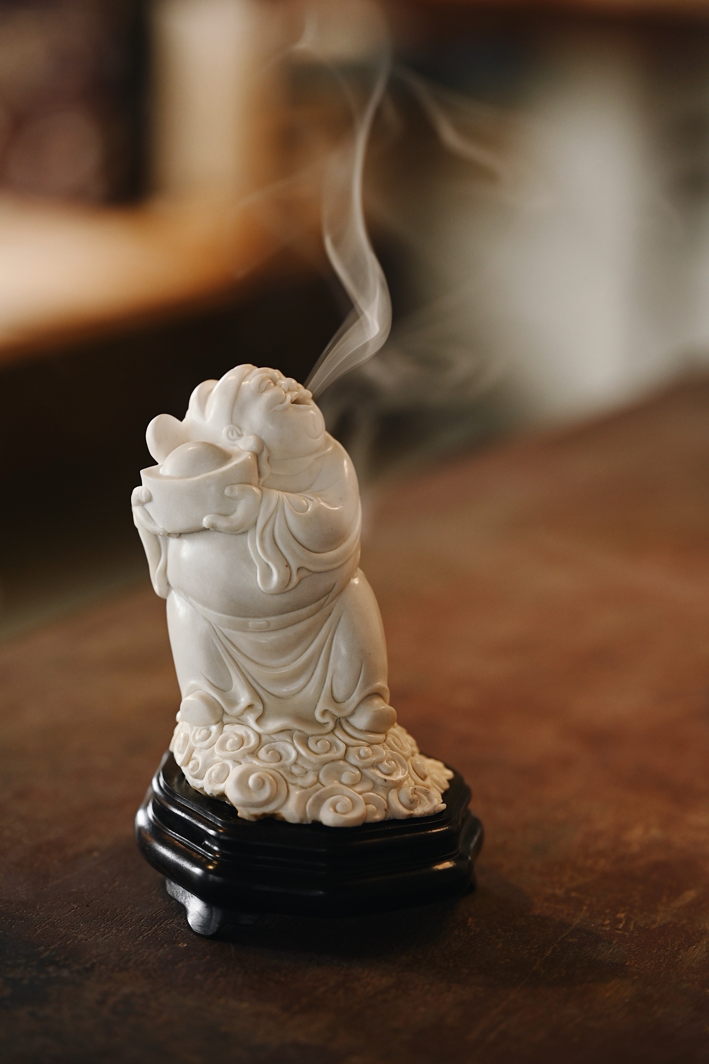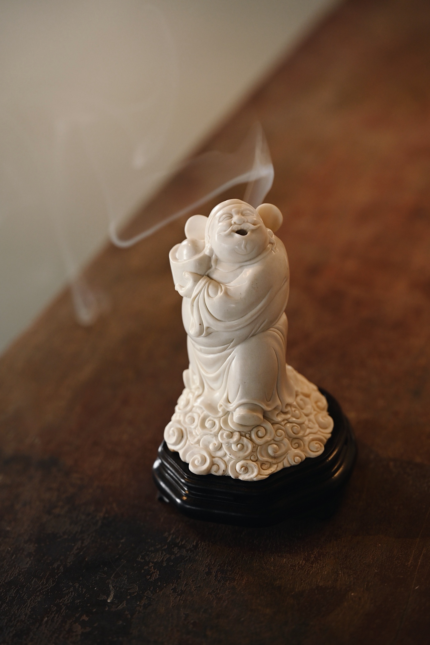 鹿角 | 财神爷 香炉料质细腻,财神开脸慈祥喜乐,面如满月,颜貌舒泰,衣袍随风摆