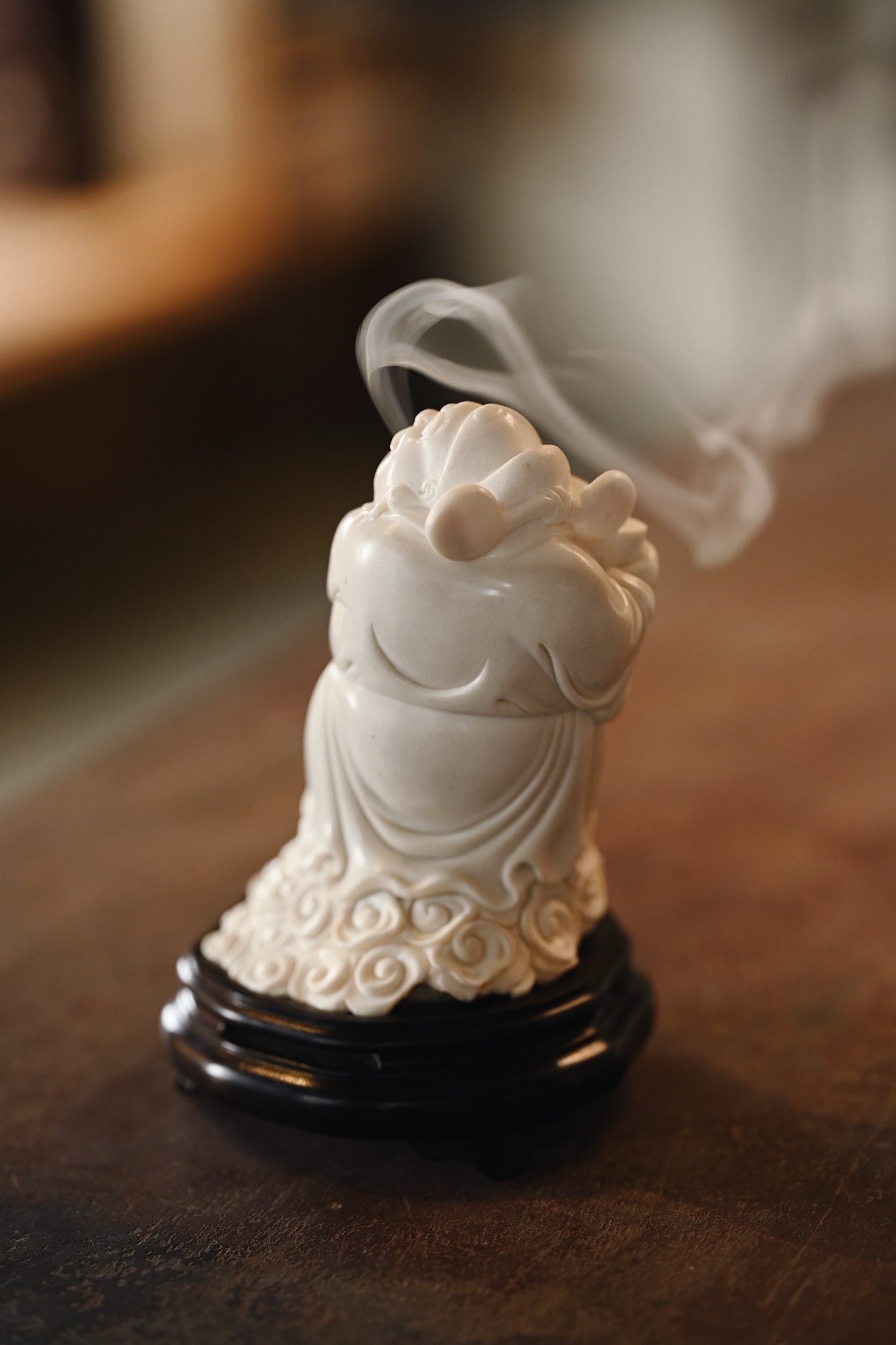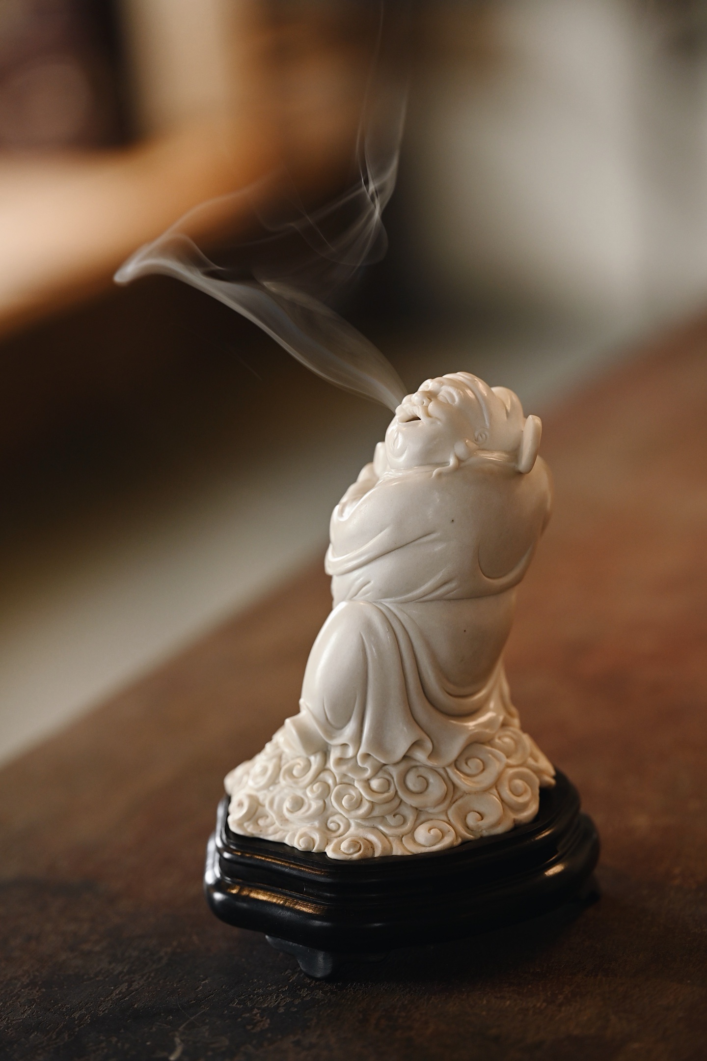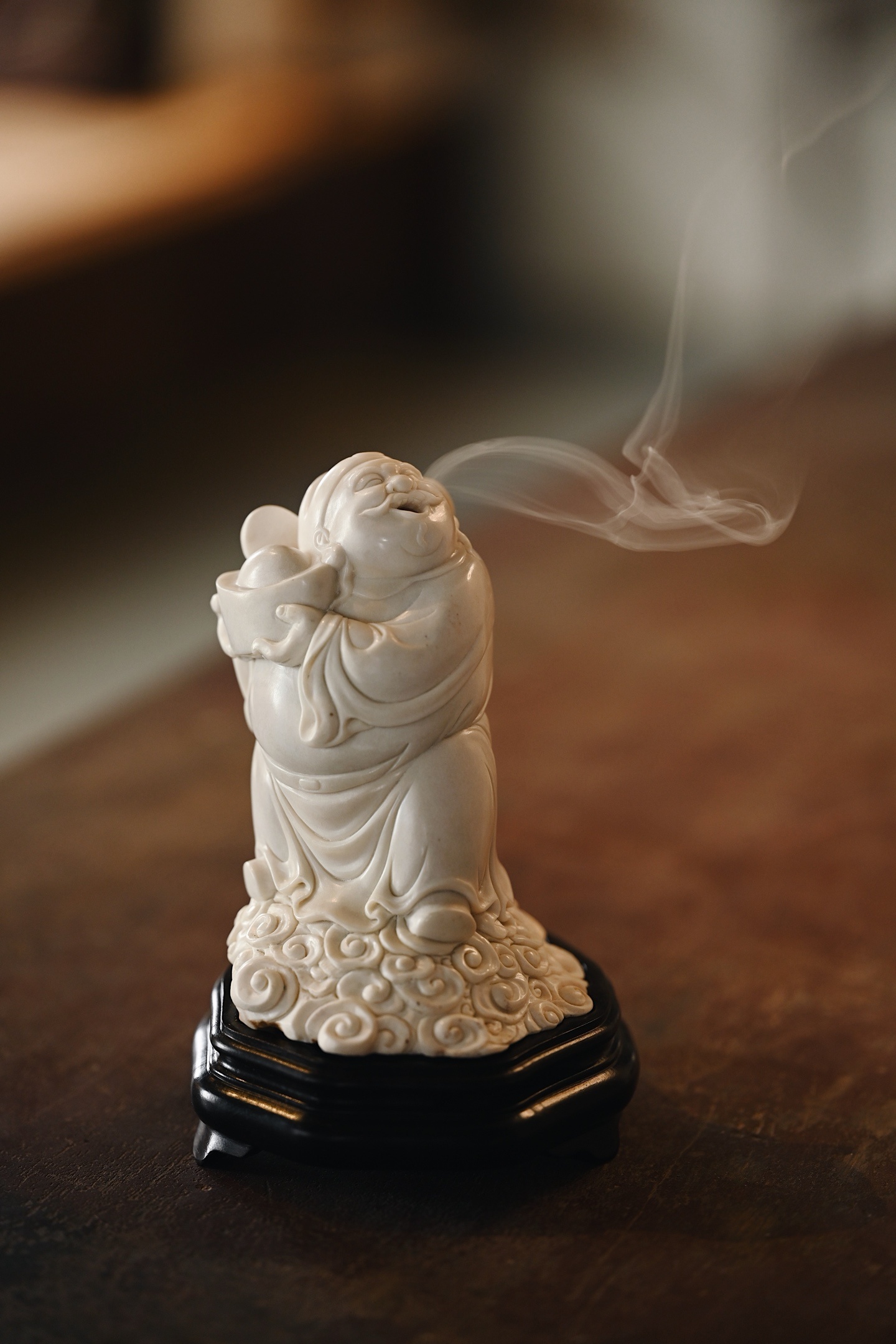 鹿角 | 财神爷 香炉料质细腻,财神开脸慈祥喜乐,面如满月,颜貌舒泰,衣袍随风摆
