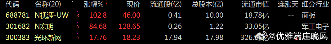 688781 N视涯301682 N宏明300383 光环新网