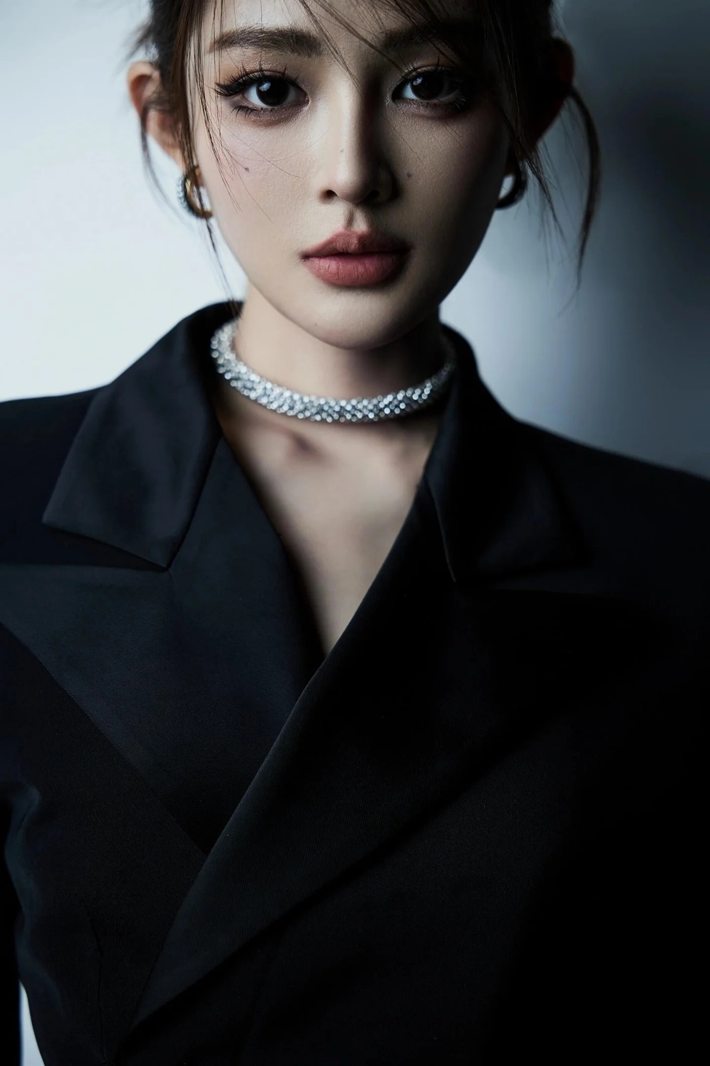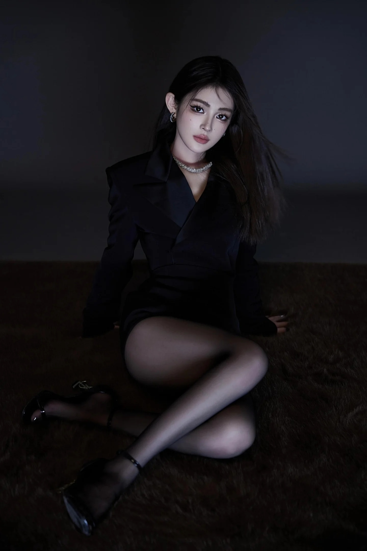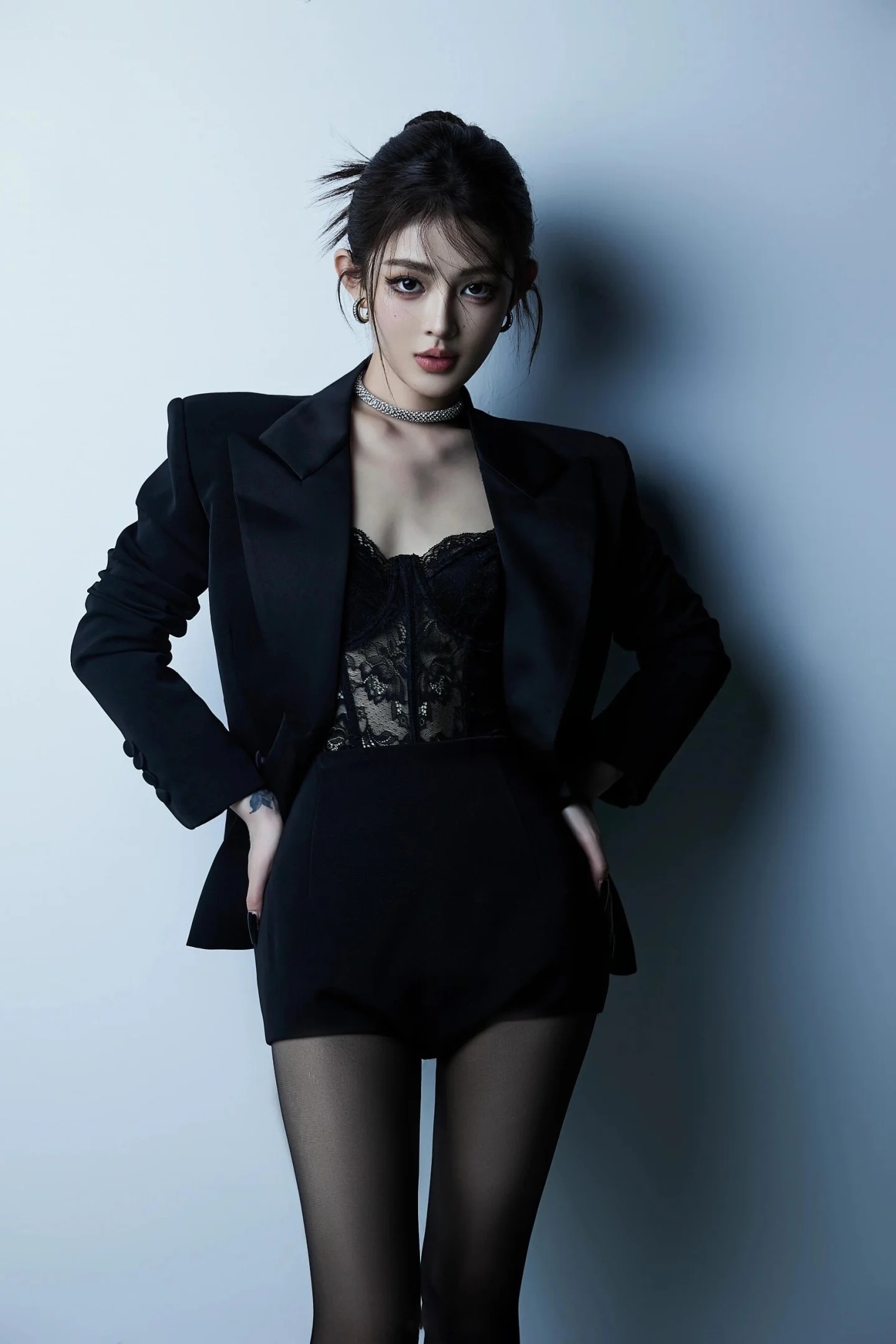 眼镜杀御姐杨超越酷飒上线杨超越全黑look的女王