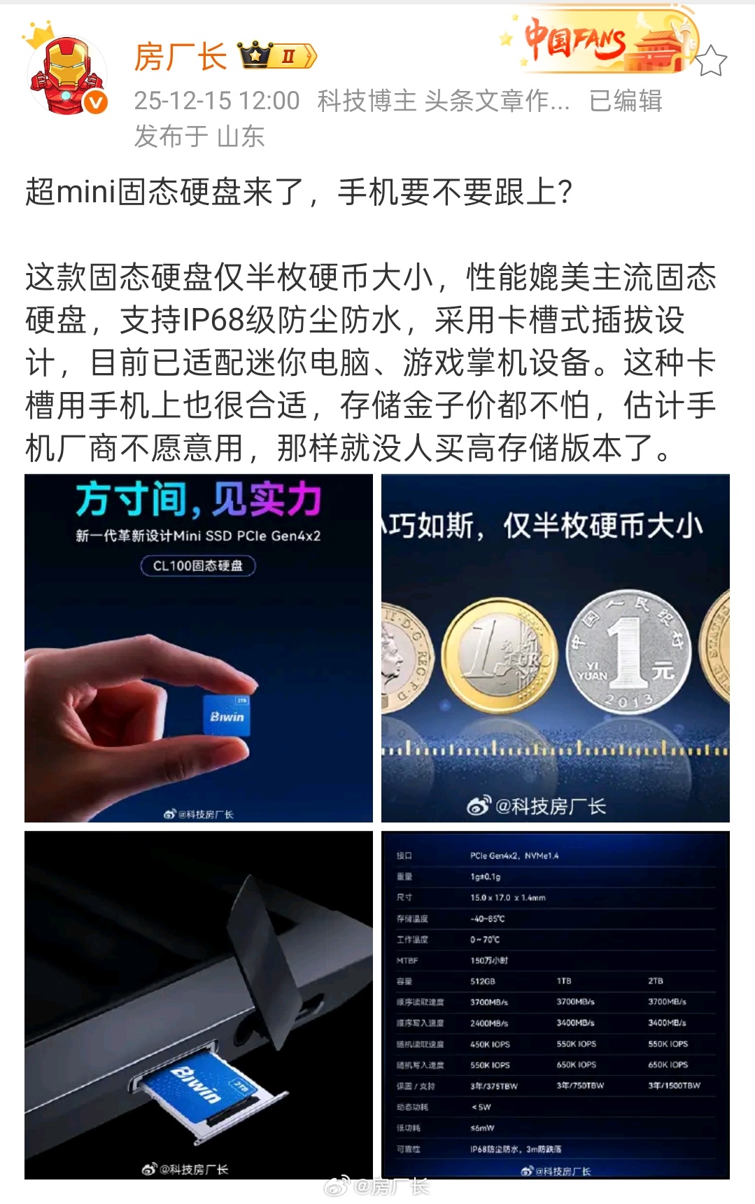 诺基亚N91是第一个把机械硬盘装进手机的,那未来谁会第一个用上迷你固态硬盘呢,各项性能表现完美,只需要一个卡槽轻松扩展到2TB