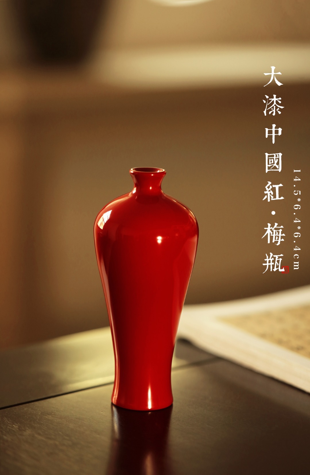 14.5*6.3*6.3cm 重226g 大漆·中国红 | 梅瓶
