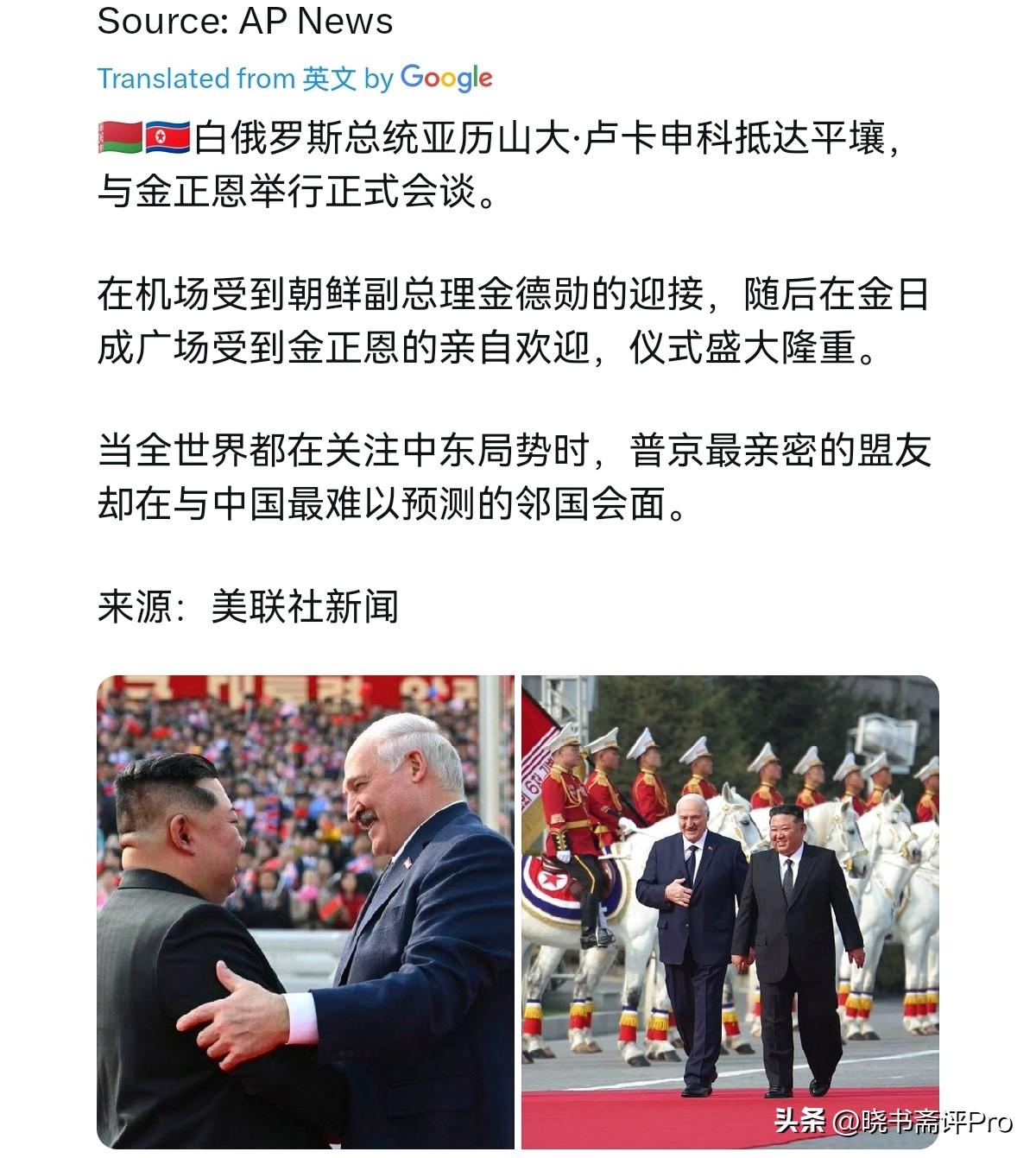 朝鲜给予超高规格接待!白俄罗斯总统卢卡申科历史性访问朝鲜! 3月26日,美媒称,白俄罗斯总统卢卡申科访问朝鲜,这引发极大关注。此次访问,这是卢卡申科首次访问朝鲜,也是白俄罗斯1991年独立以来,历史上第一次有国家元首访问朝鲜 。对此此次访问,有几方面非常值得关注。 其一,这是历史性首访。而这次访问是2025年9月北京“九三阅兵”会晤时,朝鲜领导人金正恩当面对白俄罗斯发出的邀请。 其二,朝鲜给予超高规格接待,这包括朝鲜领导人金正恩全程陪同,在金日成广场举行盛大欢迎仪式 ,检阅朝鲜人民军仪仗队,一对一闭门会谈,参观解放纪念碑、举行国宴招待等等。 其三,双方签订了《友好合作条约》,表示要深化俄-白-朝三方协作,并在联合国等多边场合互相支持,交流国防、军工、航天技术合作。 其四,推进经贸合作,推进易货贸易,绕开美元与SWIFT,用资源换物资与技术的合作。探索朝鲜-俄罗斯-白俄罗斯过境运输与经济走廊。 很显然,在当下全球格局下,白俄罗斯和朝鲜都受到了严厉的国际制裁。在单边制裁与阵营对抗愈演愈烈的背景下,朝白两国此次历史性握手,绝非简单的外交礼节,而是在西方世界长期孤立下的突围和抱团取暖。 这次访问不仅补上了俄-白-朝三角协作的最后一环,更让三方在安全协同、军工技术、去美元化贸易、国际舆论发声上形成联动效应。而这样的合作,在美国对两国施压时,恐怕也不得不更加谨慎。显然,美国越发破坏国际规则的行为,让越来越多的国家开始思变,找寻应对之道,这对于美国当然不是一个好消息。