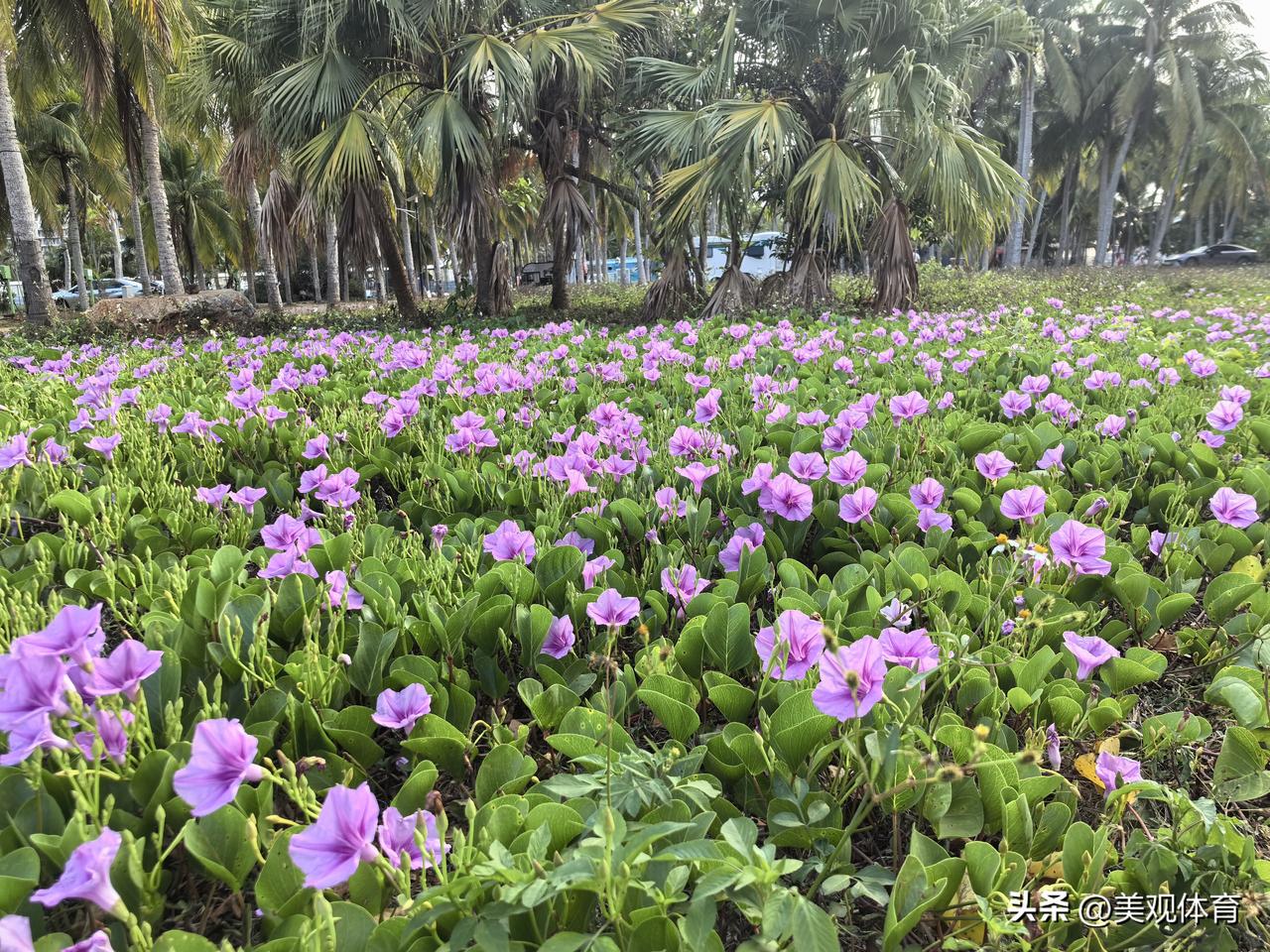 海边的厚藤,其可适应强劲海风吹袭可改变沙地微环境,常被选用为防风定沙先锋植物。