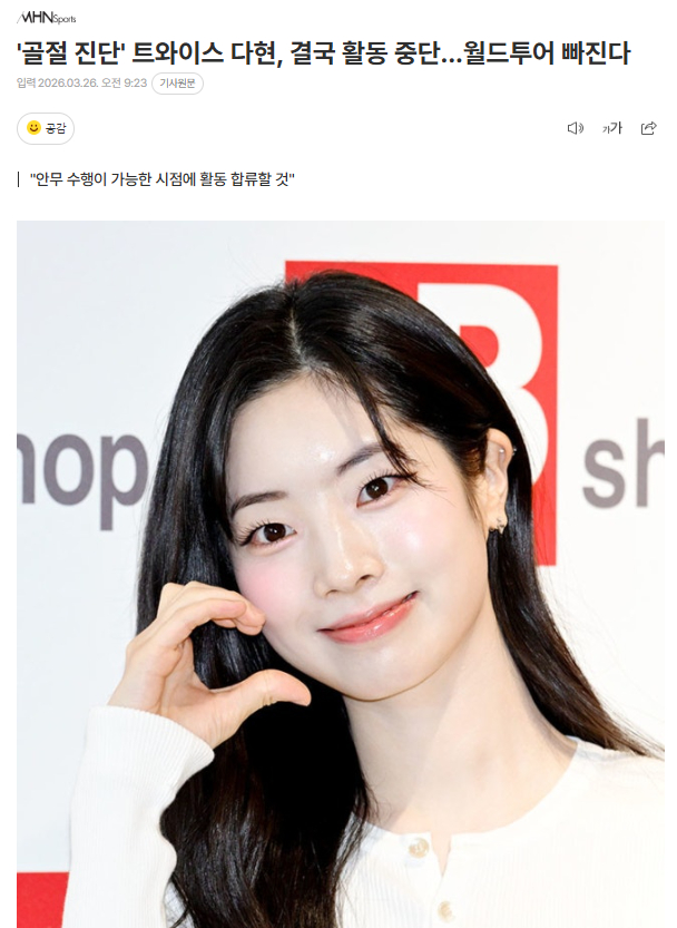 25日,JYP方面表示TWICE多贤因健康问题将暂时中断活动。多贤上个月被诊断为脚踝骨折。JYP方面公告表示:“多贤暂时将专注于健康恢复,计划在可以完成编舞的情况下再加入活动。”