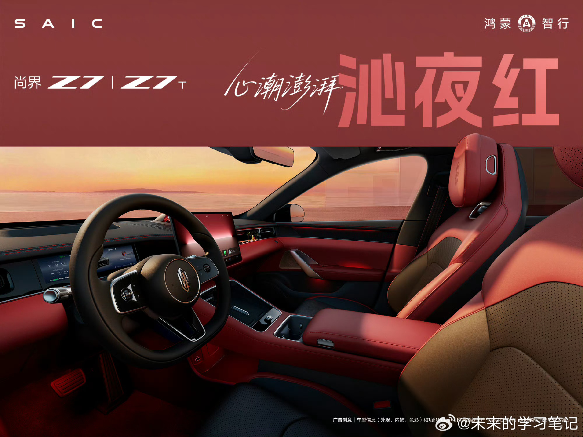 尚界Z7尚界Z7T沁夜红、凝夜紫、速影黄、闪金黑、缥云杏五款内饰颜色任选,速影黄好像热度很高