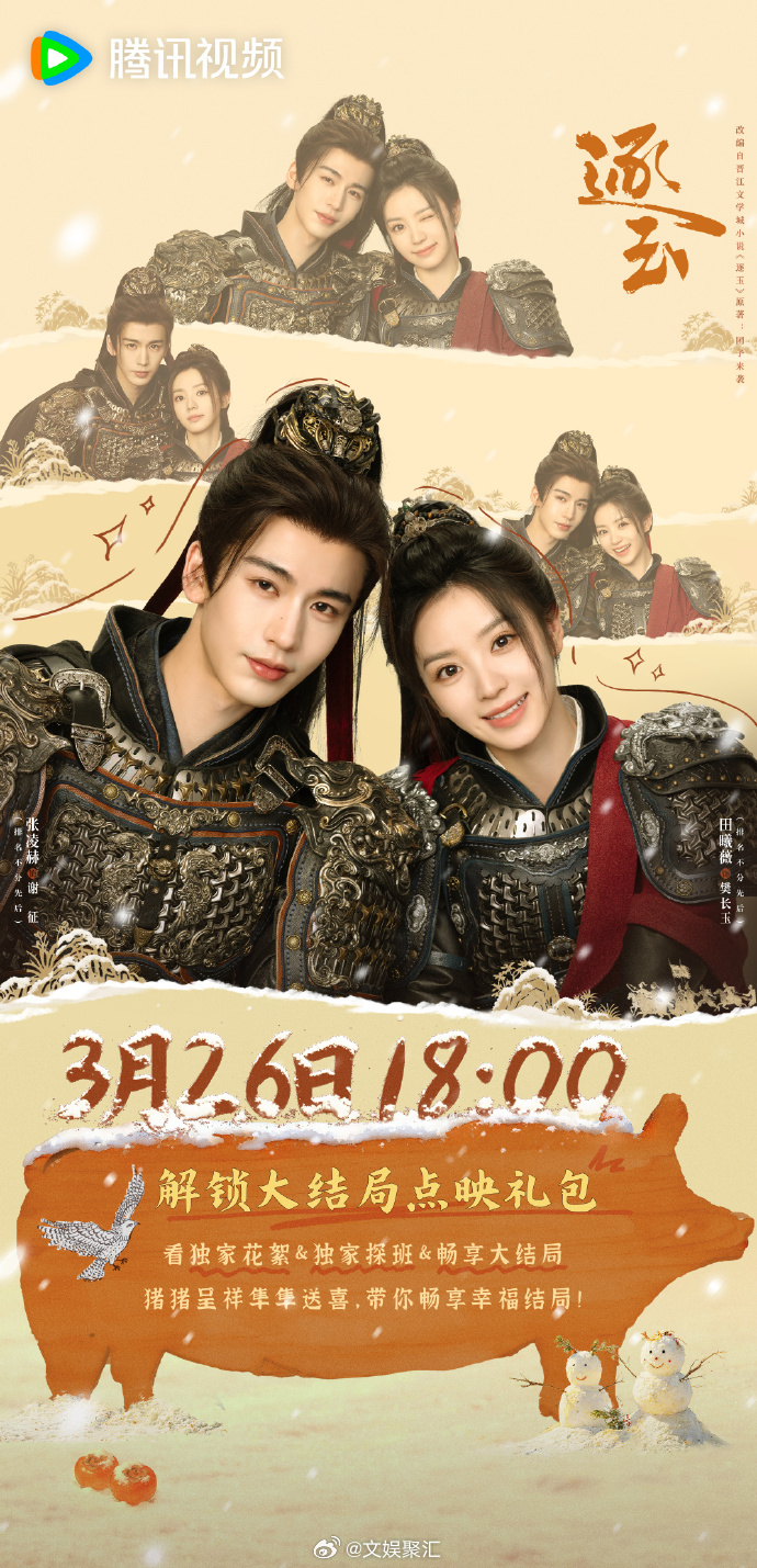 逐玉点映礼逐玉大结局点映多年纠葛终落幕,谢征樊长玉破局相守!《逐玉》大结局点映礼包今晚18:00上线,畅享大结局+独家福利!樊长玉进门是簪花将军出门是京城贵女