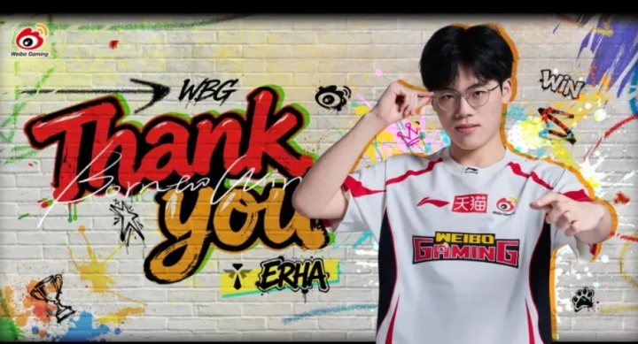 感谢Erha选手对WBG英雄联盟分部的付出与陪伴,也感谢粉丝们的关心与支持。