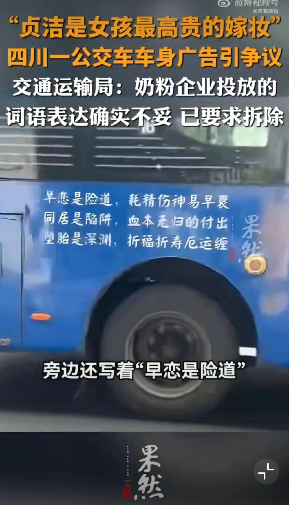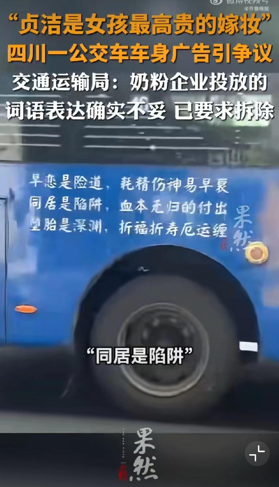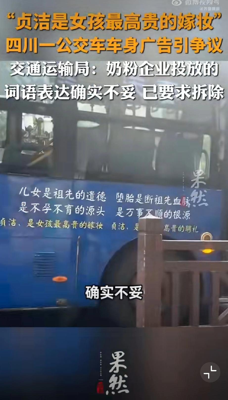 公交车贴“贞洁嫁妆”标语?封建糟粕别在现代社会招魂! 四川乐山这公交车广告真是让人看了火大!“贞洁是女孩最高贵的嫁妆”“堕胎断血脉”——这哪是广告,简直是封建糟粕的“移动贞节牌坊”,在现代社会里瞎晃悠! 都2026年了,居然还有人把女性价值绑在“贞洁”上,把堕胎污名化成“断血脉”——这既不懂法,也没公德!《广告法》明确规定,广告内容得符合社会公德,不能含有歧视、侮辱性内容。这种拿封建礼教物化女性的标语,早该被扔进垃圾桶! 女性的高贵,从不是什么“贞洁嫁妆”,而是独立的人格、自由的灵魂、闪光的才华;堕胎是复杂的医学和社会问题,绝不是可以被粗暴诅咒的“罪孽”。 这种广告能堂而皇之贴在公交车上,不仅是对女性的冒犯,更是对现代文明的挑衅!公交标语 女司机标语 婚车横幅