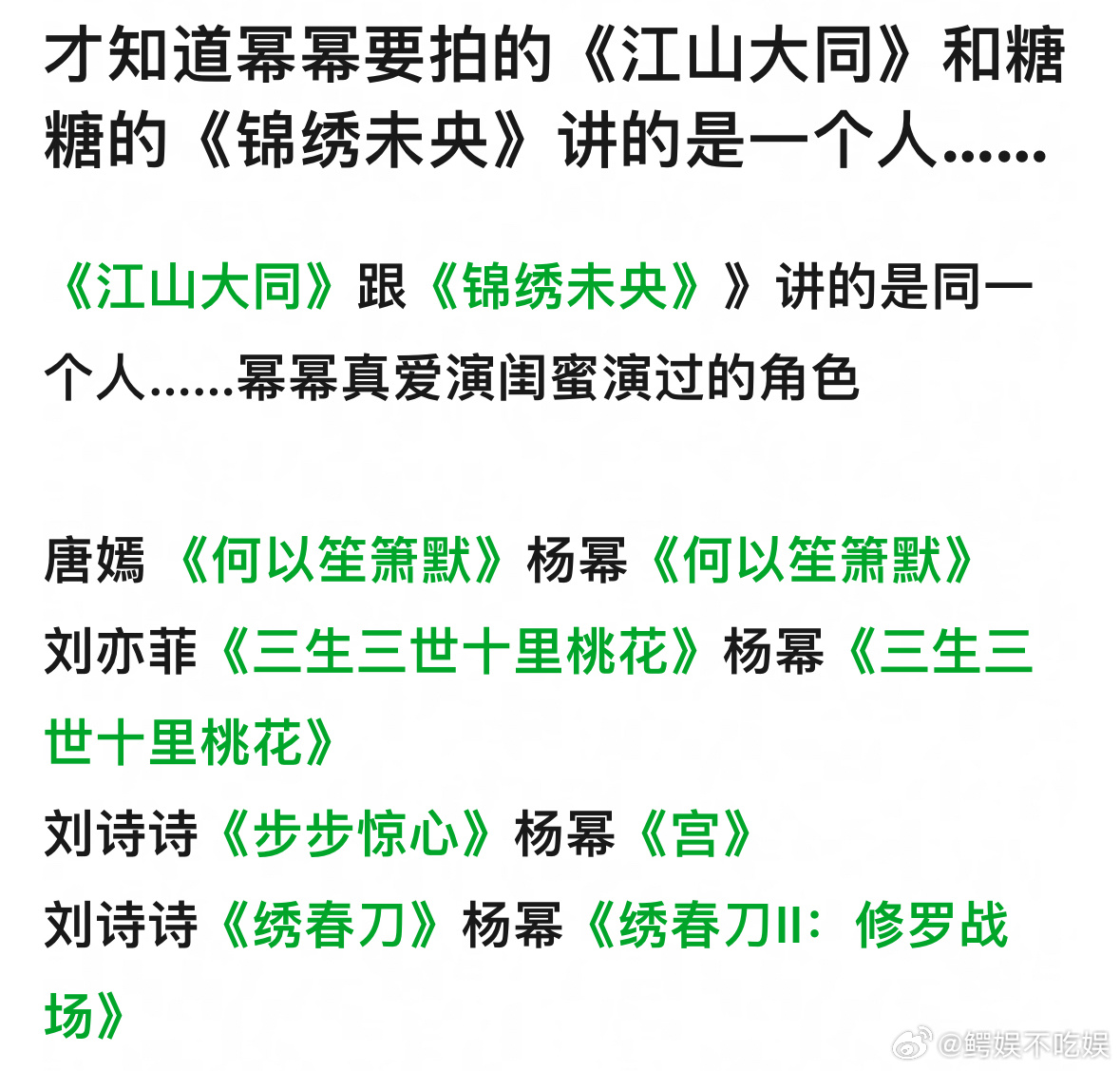 杨幂又演了唐嫣拍过的角色啊,两个人就这样缠缠绵绵