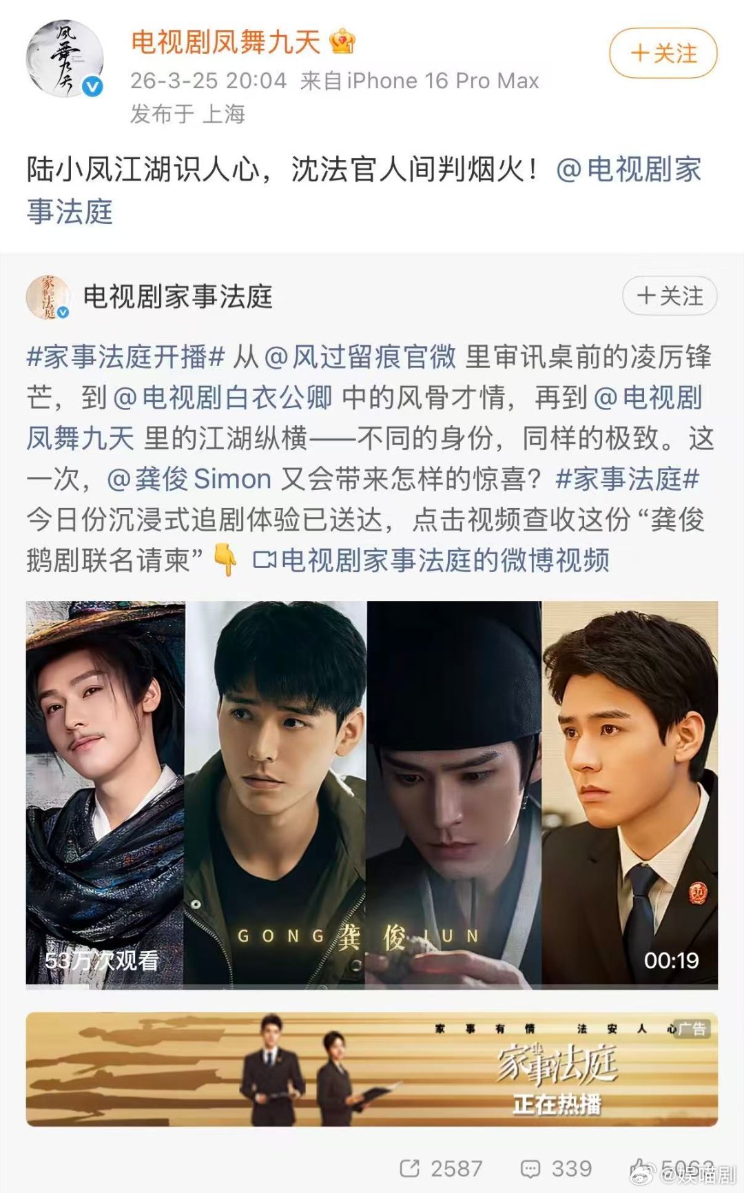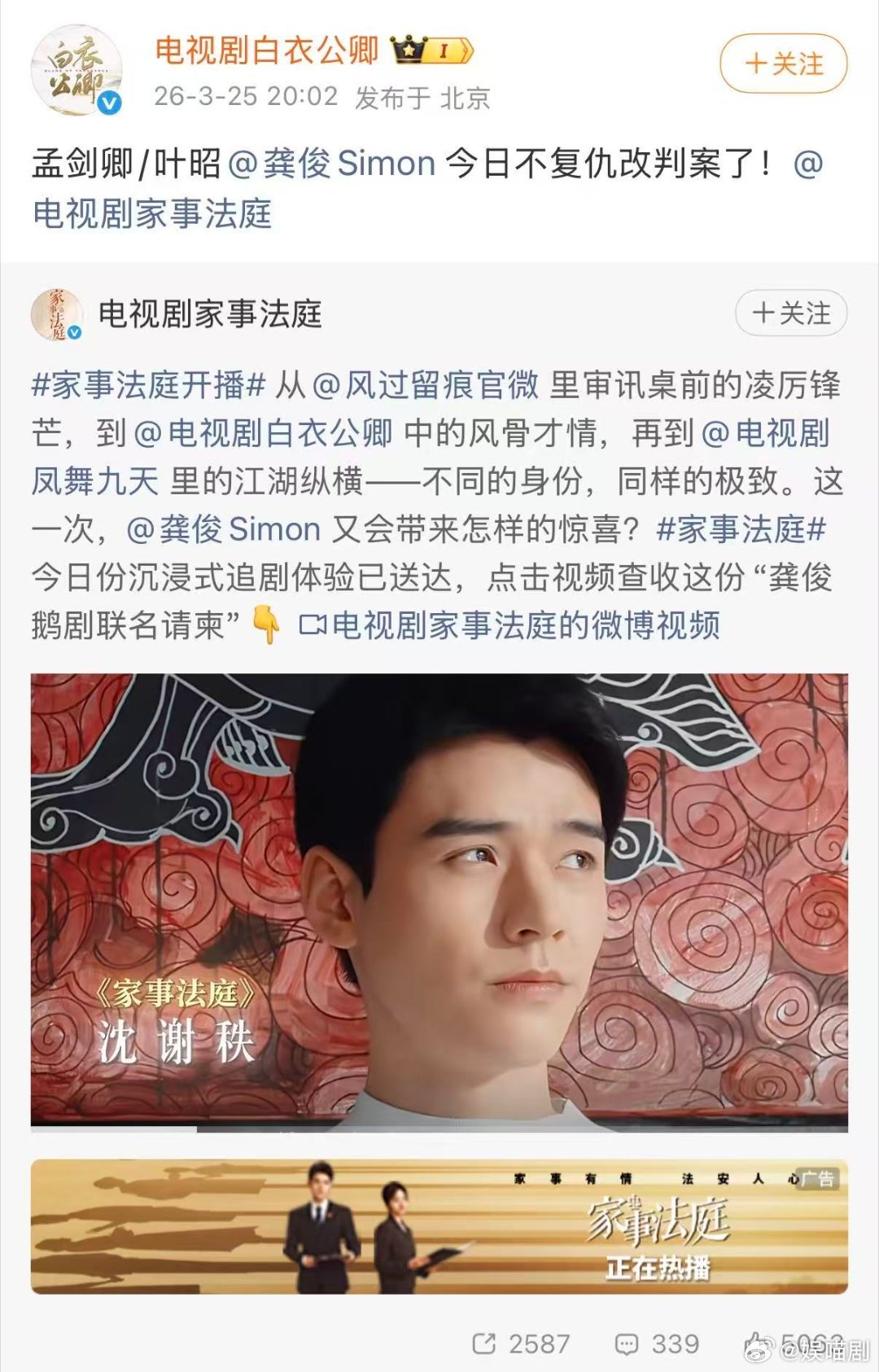 龚俊四部剧都在体制内《家事法庭》沈谢秩刚上线,加上《风过无痕》《白衣公卿》《凤舞