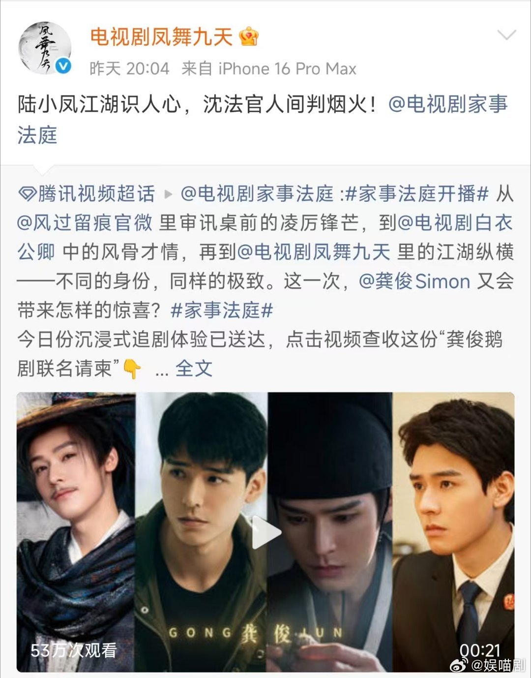 龚俊四部剧都在体制内《家事法庭》沈谢秩刚上线,加上《风过无痕》《白衣公卿》《凤舞九天》,龚俊四剧全在体制内,这阵容太顶了,内娱留给他的编制真不多了!