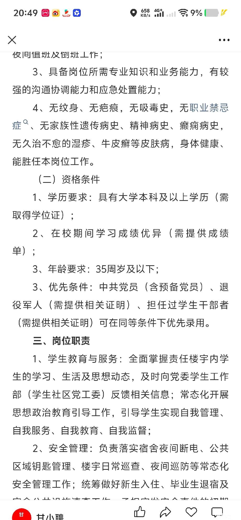 宿管阿姨都要求学历了 我的天啊,这个世界果然颠成我不认识的样子了,薪资待遇是扣完五险一金3300,不管吃住,且一学期无休(包括节假日周末),只有寒暑假有几天休息,夜班是晚上7点到早上7点,一般是连着上白班几天➕夜班几天,想报名的可以看一下。