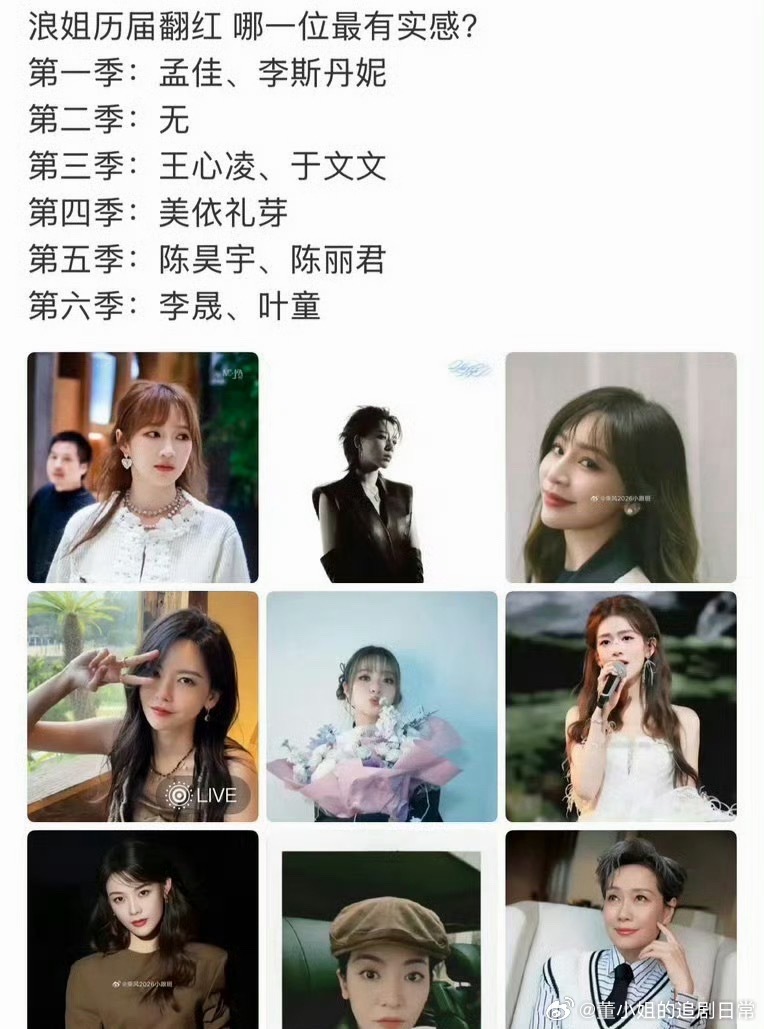 谁会是浪姐7黑马浪姐7完整阵容公布,李小冉、唐艺昕、孙怡、安崎等多位姐姐加盟,实力与颜值兼备,你心中的本届黑马会是谁呢?