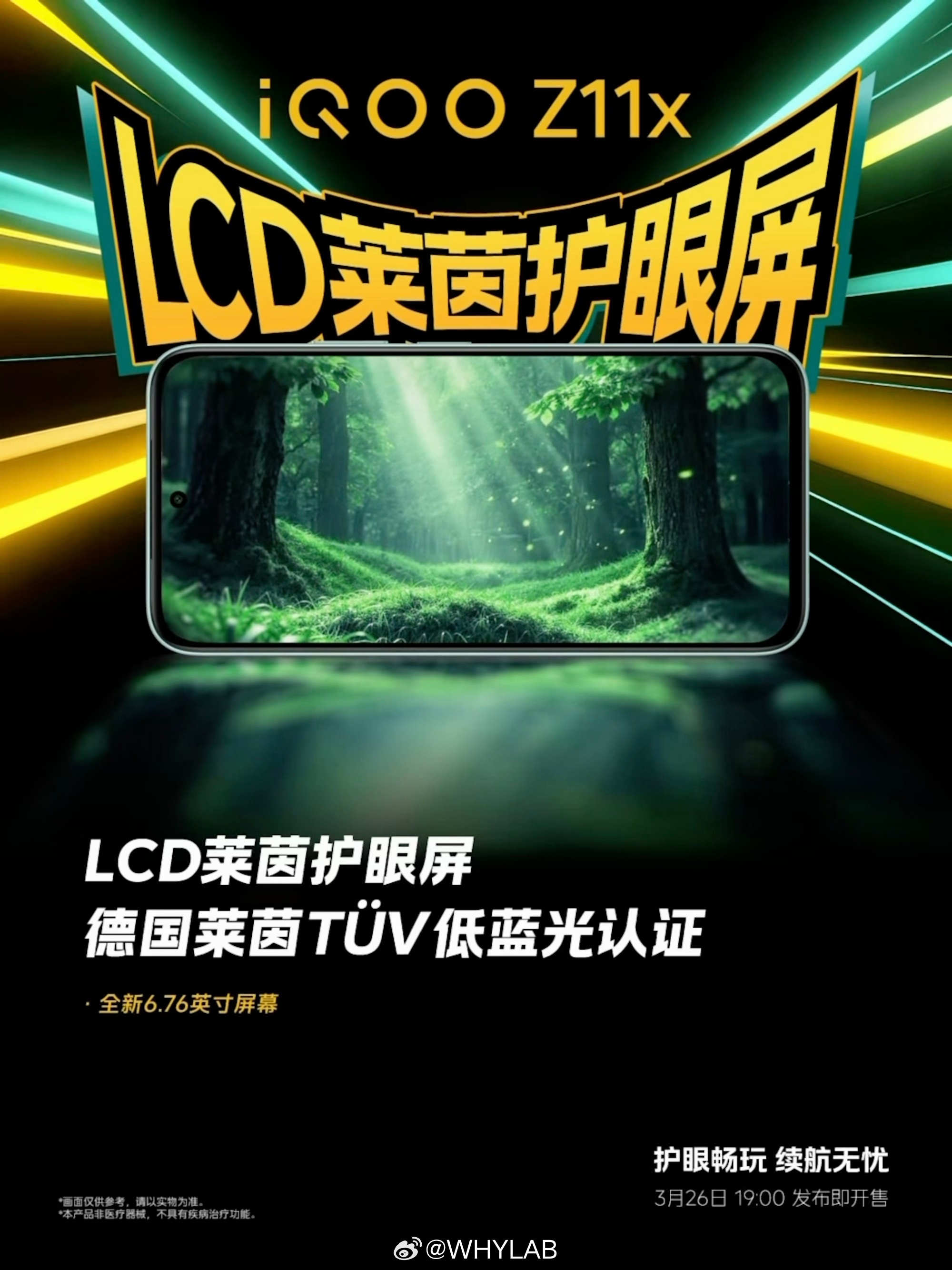 iQOO Z11x :搭载 6.76 英寸 LCD 直屏,120Hz 高刷,天玑 7400,前置 8MP,后置50MP 主摄,7200mAh 电池,44W 有线快充。