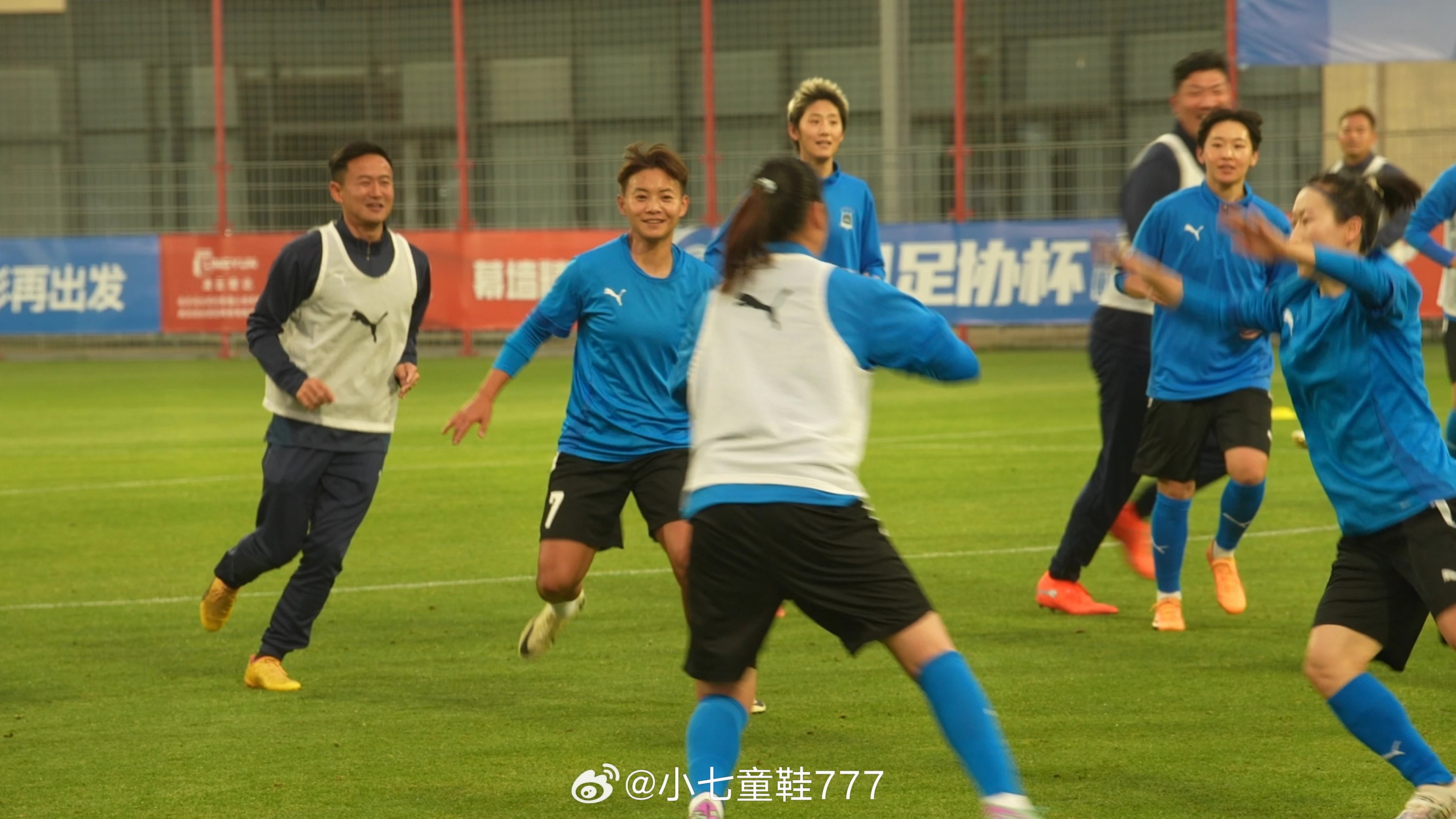 3月24日晚,全员集结的武汉车谷江大女足在塔子湖1号球场进行了合练。有趣的是,在训练的前一个小时里,氛围相当轻松,女足姑娘们一会把足球当作橄榄球,相互跑动投掷;一会又分成三人小组,把足球当作排球,隔网对战。无论是新加盟球队的闫琪、吕悦云,还是刚刚从国家队回归的王霜、吴海燕,大家都玩得不亦乐乎。