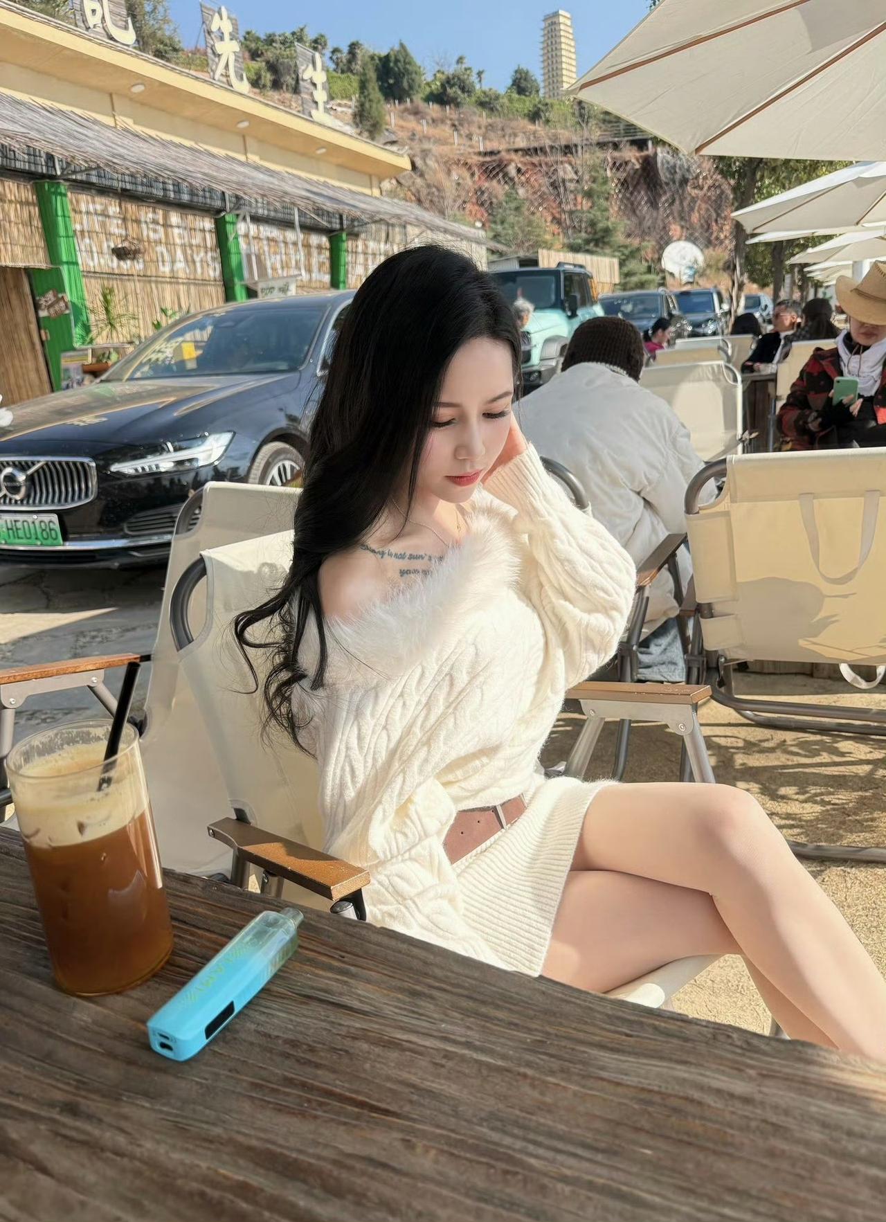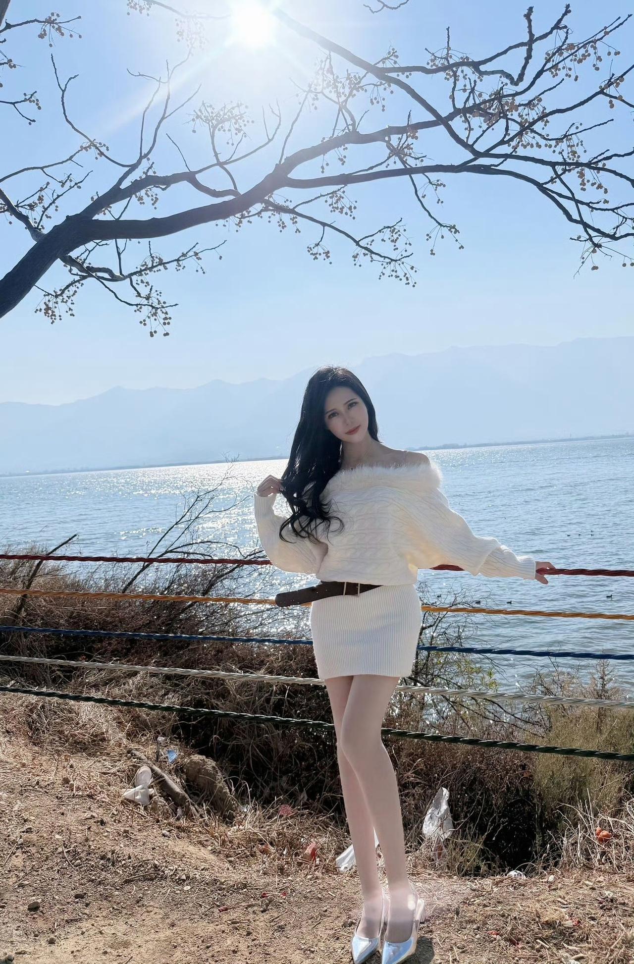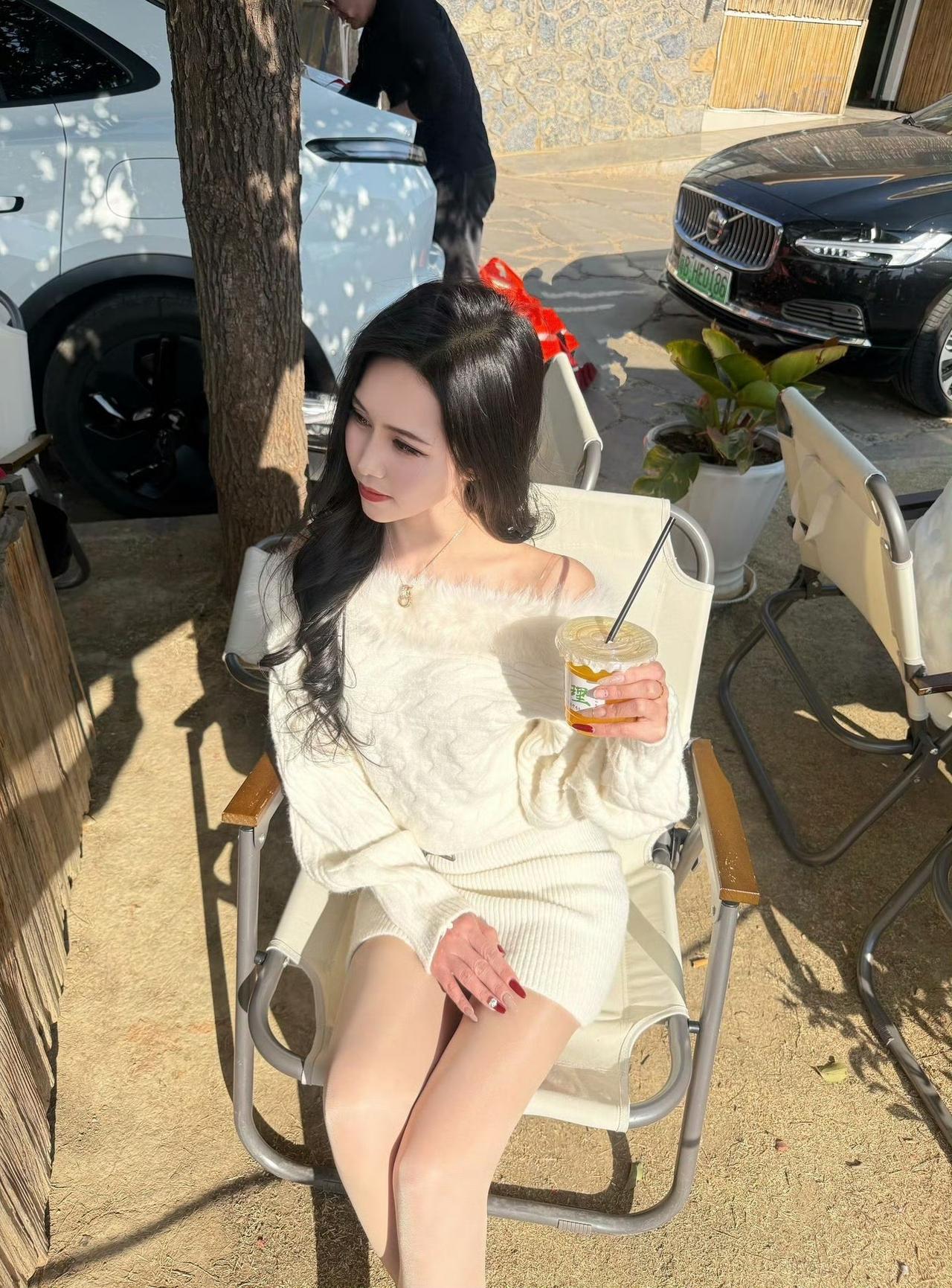 这套是温柔甜美风,核心是白色毛绒露肩针织套装:毛绒边+露肩设计自带温柔甜美感,棕色腰带增加利落细节,浅肤色袜+闪银单鞋强化精致氛围,清新又有贵气感。白色针织套装 米白针织穿搭