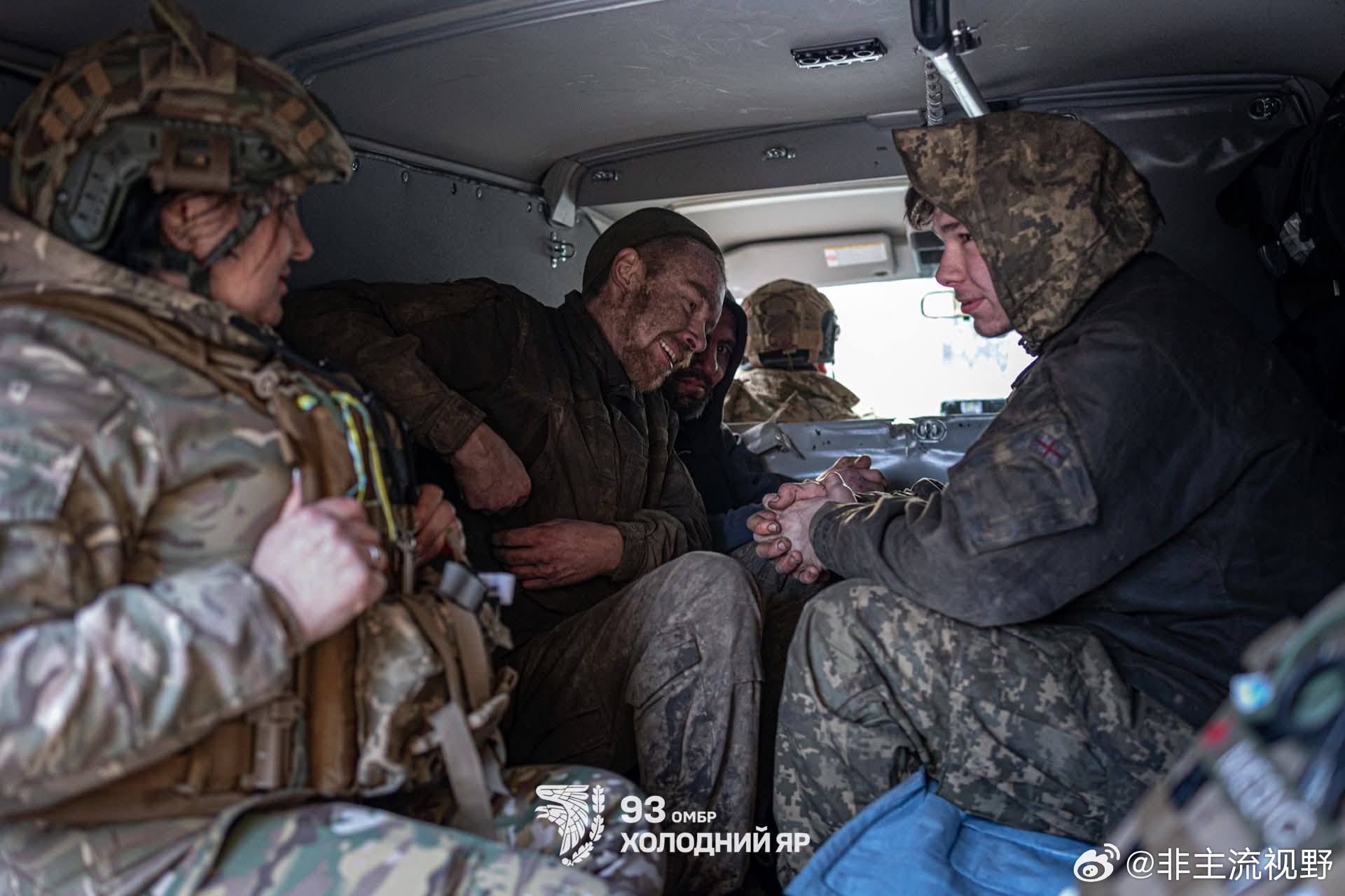 这是乌克兰武装部队第93旅的几个士兵,他们在乌克兰东部顿涅茨克的康斯坦丁尼夫卡战场坚守了224天,这段时间里他们消灭了十几个俄罗斯人,经过几次尝试,现在他们成功的从前线撤离。