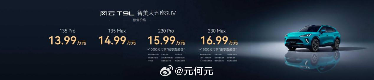 奇瑞风云T9L正式开启预售,五座SUV,4款配置。预售区间13.99-16.99