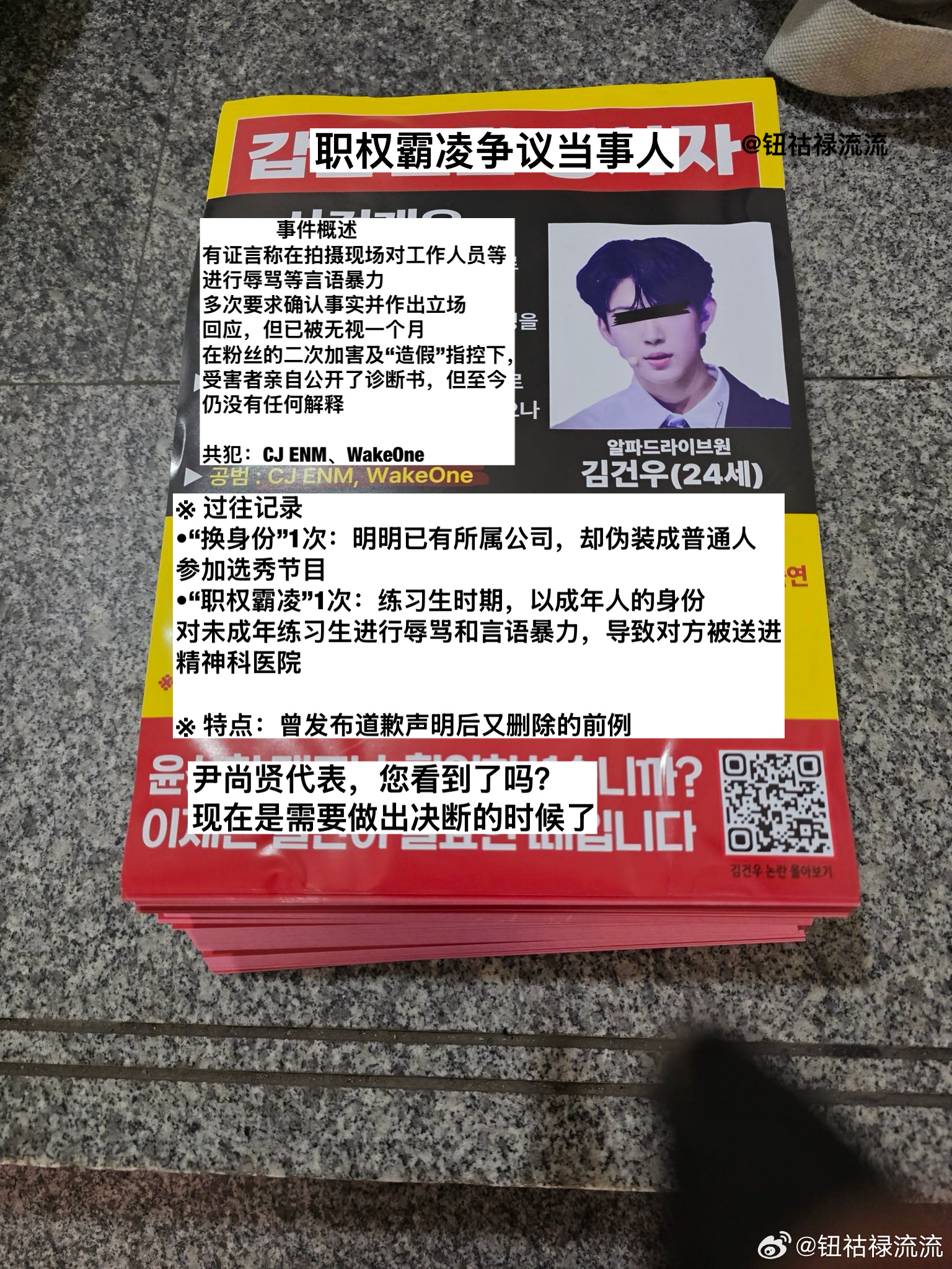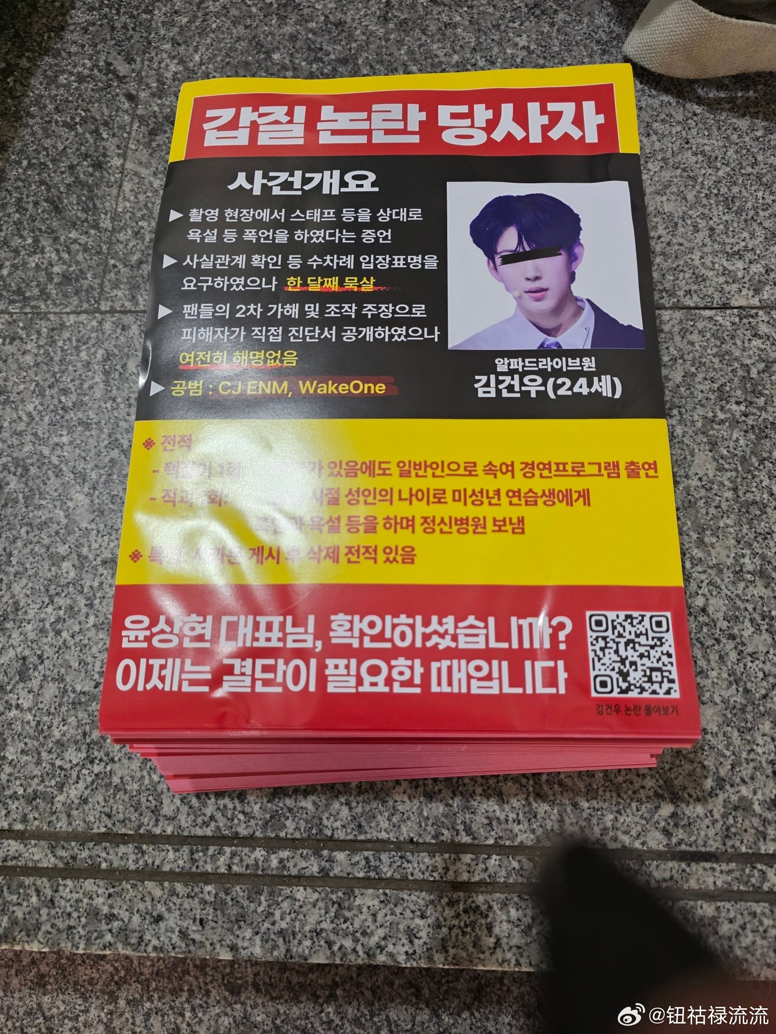 【热帖】实时MCD现场,ALD1粉丝正在发传单抵制金虔佑今天在 CJ ENM门口