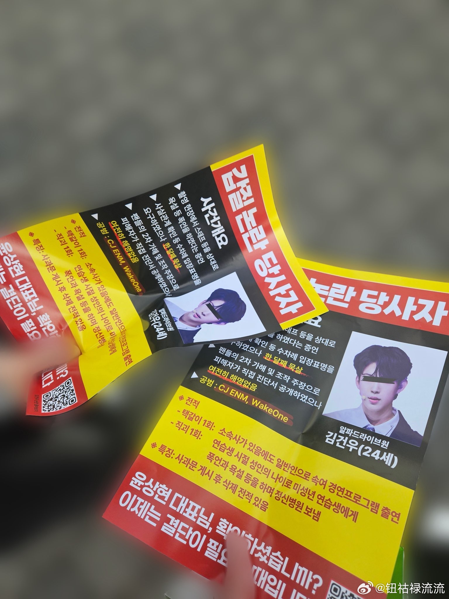 【热帖】实时MCD现场,ALD1粉丝正在发传单抵制金虔佑今天在 CJ ENM门口发传单,让来MCD录制现场观看的其他爱豆粉丝,还有下班的上班族都能看到。这种抗议形式在饭圈还是第一次见