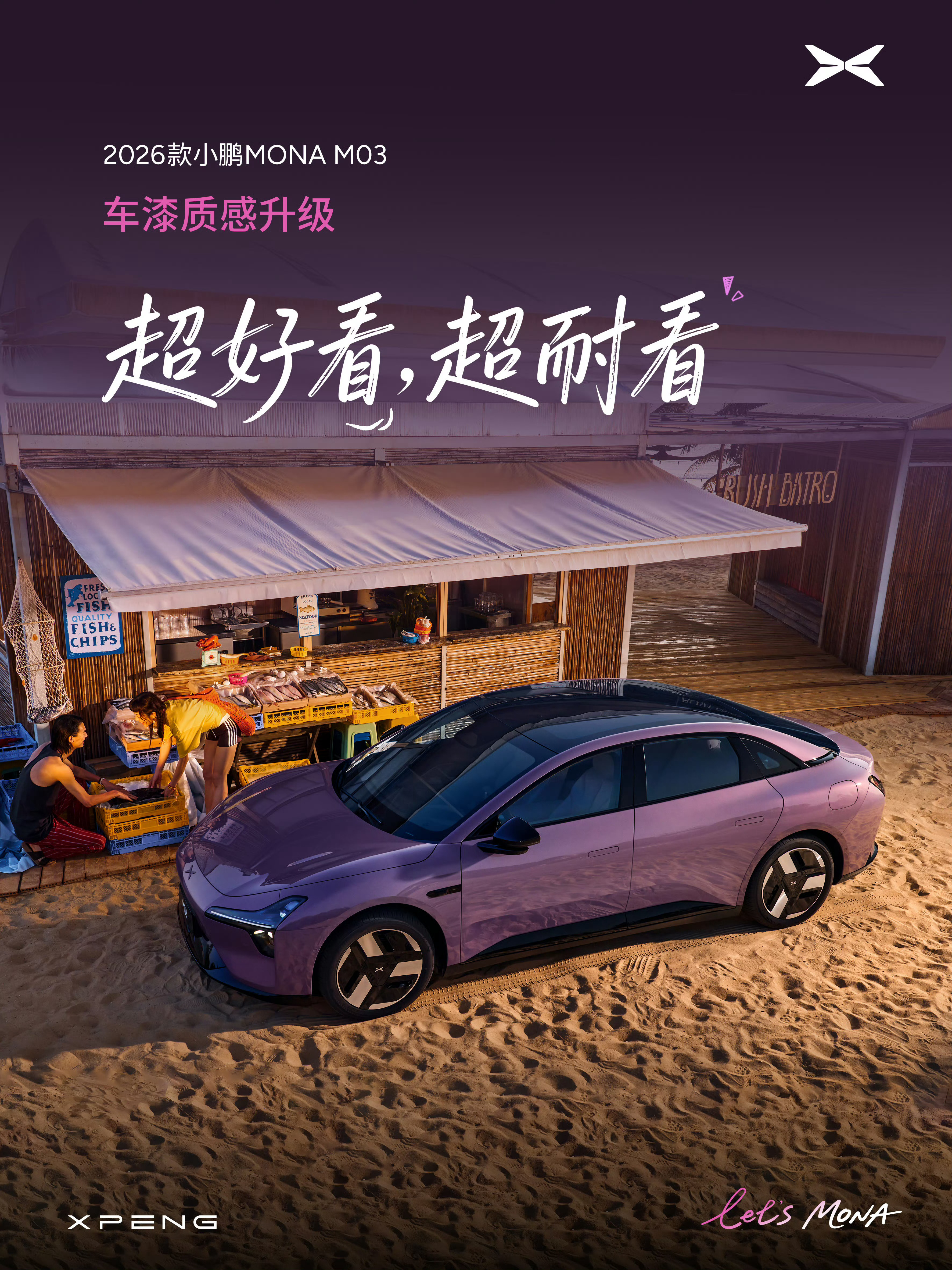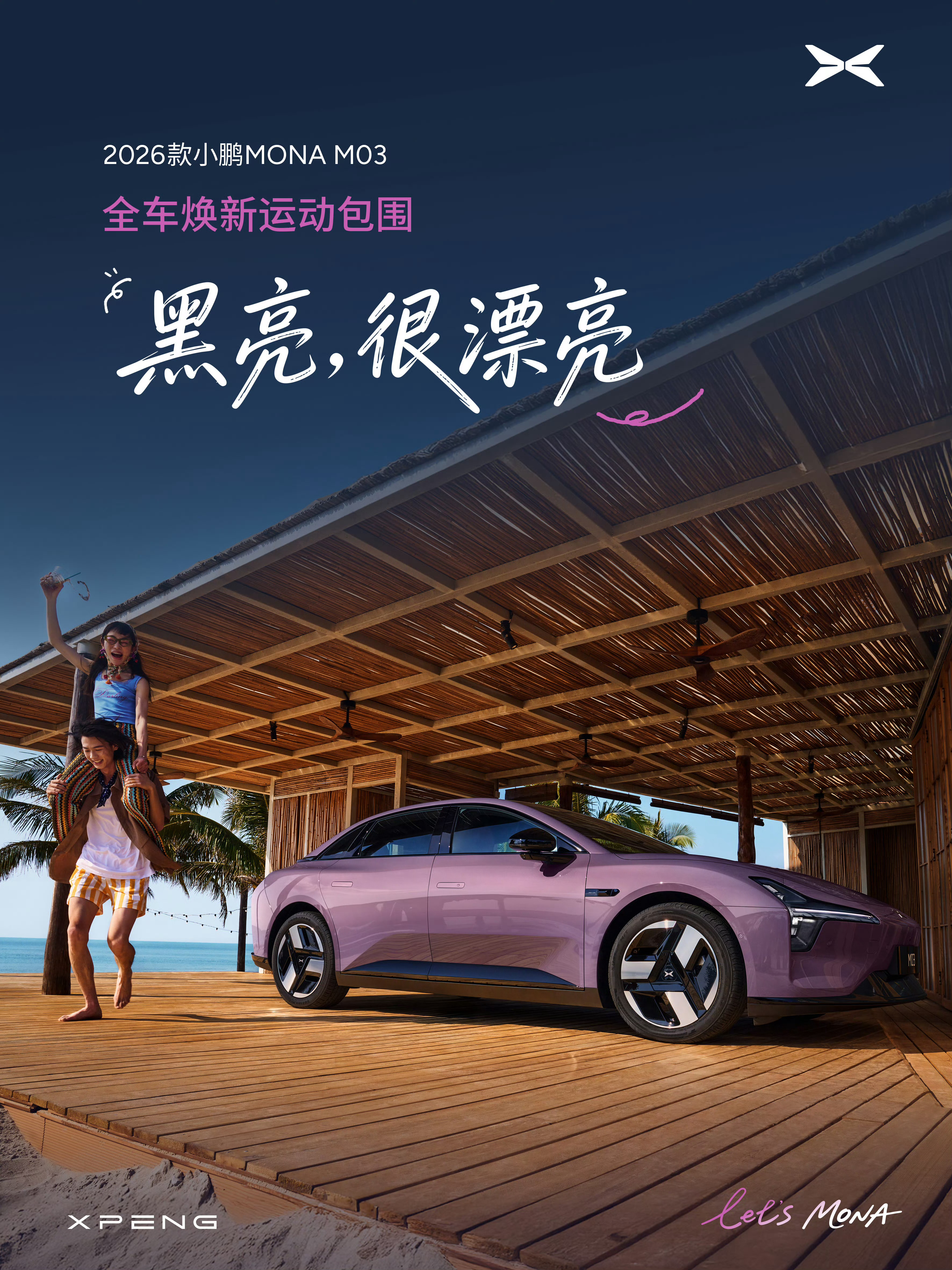 2026款小鹏MONA M03,新增潮流配色、越级舒适配置、高阶智驾下放等全方位升级。