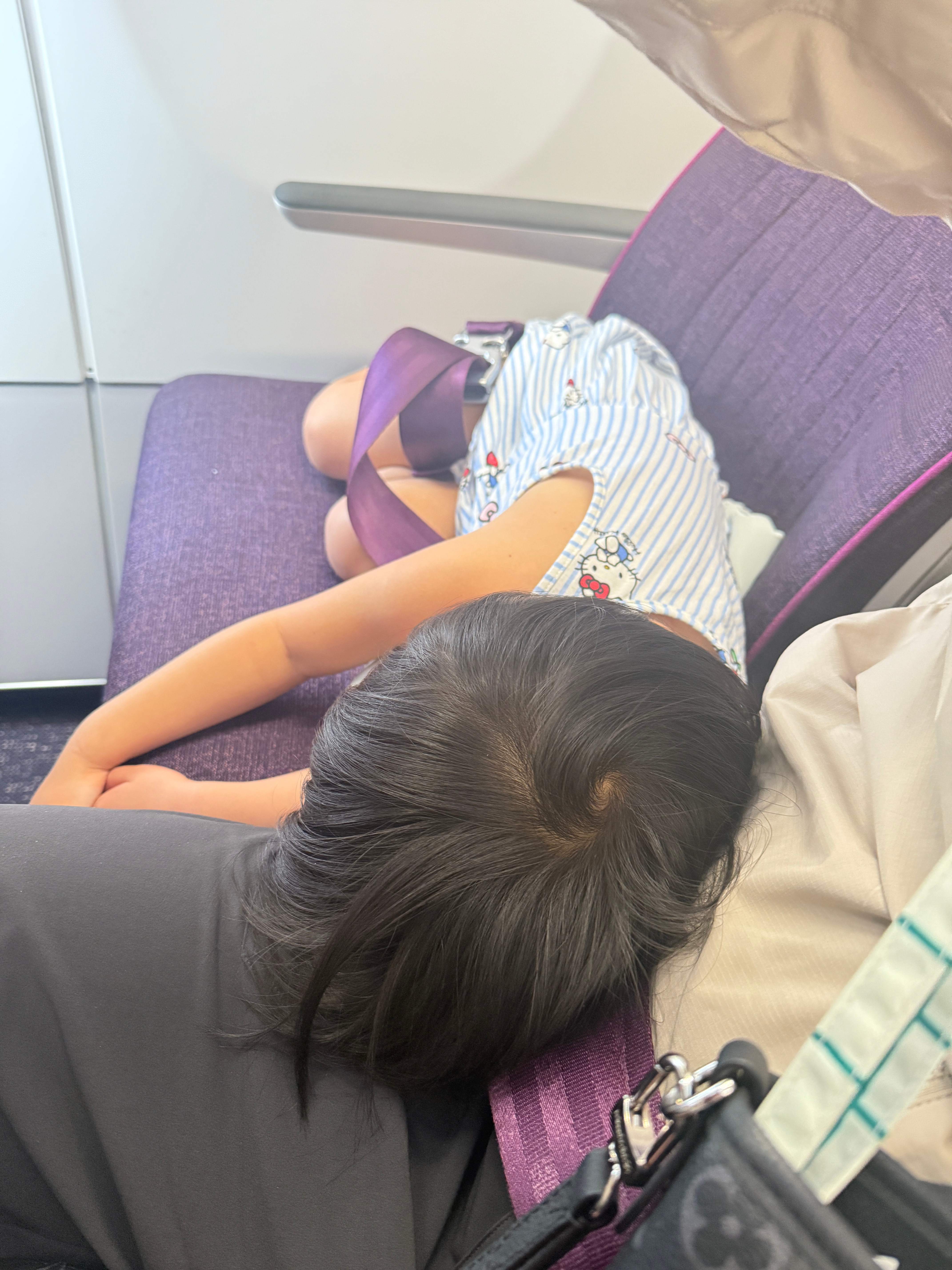起飞的时候说爸爸我困了,你给我调整安全带,我躺着睡觉吧