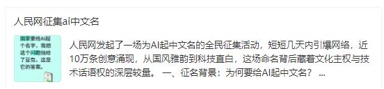 刚看到一个新闻, 我后背突然一凉。 人民日报请全国人民给AI起中文名字,说真的,我挺震惊的。 AI来中国这么多年,竟然连个正式中文名都没有?还是说,我们压根没把它当自己人? 咱们就说,这 AI 到底在咱们身边扎根有多深了。 截至 2025 年底,咱们国家用过生成式 AI 的人已经到了 6.02 亿,差不多每三个中国人里,就有一个接触过这东西。 到 2026 年 3 月,咱们国产 AI 大模型的周调用量,已经突破了 4.69 万亿 Token。 可能有人不懂这 Token 是啥,说白了就是 AI 处理信息的最小单位,4.69 万亿 Token 换算成汉字,大概是 3.52 万亿字,相当于一周之内,咱们的 AI 就处理完了 4400 套《四库全书》的信息量。 就这个数据,已经连续两周领跑全球,把美国都甩在了身后,全球调用量排名前三的席位,全被咱们国产模型包圆了。 现在市面上,光是完成国家网信办备案、能正经给大家提供服务的 AI 大模型,就有 433 款。 小到咱们平时用手机拍个照修图,发朋友圈想个文案,上班做个表格、写个会议纪要,大到工厂里的智能生产管控,景区里的 AI 沉浸式讲解,政务大厅里帮着办业务的 AI 员工,甚至农村里的专递课堂,都有这东西的影子。 就连 2026 年春节,用 AI 做拜年视频、生成个性化祝福的人,都数不过来,这东西早就不是什么新鲜物件了。 可就是这么个天天跟咱们打交道,咱们自己的技术都做到全球顶尖的东西,到今天,咱们张嘴闭嘴叫的,还是人家的英文缩写 AI。 说出来可能有人没在意,咱们国家的通用语言文字法里早就明确了,官方公文、新闻出版、广播电视、公共服务这些正式场景,都要以规范汉字为基本用语用字,这两个英文字母,压根就不在规范用语的范围里。 咱们回头看看,以前电脑、手机刚进中国的时候,也都是外来的新鲜技术,可咱们很快就给起了顺口好记的中文名,大人小孩都能叫,都能懂。 怎么到了 AI 这里,都火了这么多年,用户都好几亿了,连个正经的中文名都定不下来? 有人可能说,不就是个名字吗,叫啥不一样。 可咱们看看真实的统计数据就知道,不一样,太不一样了。 有机构做过全国范围的监测,老年群体对 AI 这个英文缩写的理解率,只有 43%,农村地区的老百姓理解率更低,只有 37%。 很多上了年纪的人,听年轻人天天说 AI,根本不知道这是啥东西,还以为是什么洋牌子,平白就给这智能技术加了一层门槛,让很多人连了解的心思都没了。 有个地级市的政务服务中心就试过,之前公示智能服务项目的时候,用的是 AI 这个英文缩写,每天光过来问这是什么、能干啥的老百姓,就有 230 人次。 后来他们改成了大家能听懂的中文表述,每天来咨询的人直接降到了 45 人次,就一个名字的事儿,老百姓的理解度上去了,沟通效率直接提了 80%。 这次人民日报发起全民征名的倡议,刚发出来相关话题的单日阅读量就破了 3 亿,网友们都在评论区里出主意,有从咱们传统文化经典里找灵感的,有起接地气的亲民名字的,最高赞的一条留言就说,中国的 AI,就该叫中国名字,念着顺口,听着亲切,这才是我们自己的科技。 可话说回来,咱们也得静下心琢磨琢磨,这技术咱们都做到全球第一了,应用场景比谁都多,用的人比谁都广,怎么到今天才想起来给它起个正经的中文名?是之前这么多年没人想到,还是咱们打心底里,就没把这东西当成咱们自己的? 咱们国产的大模型,现在在海外都火得一塌糊涂,全球最大的 AI 模型 API 聚合平台上,咱们的模型占了大头的调用量,连硅谷的开发者都抢着用。 可咱们自己人日常用的时候,还在叫人家的英文缩写,说起来都觉得有点别扭。