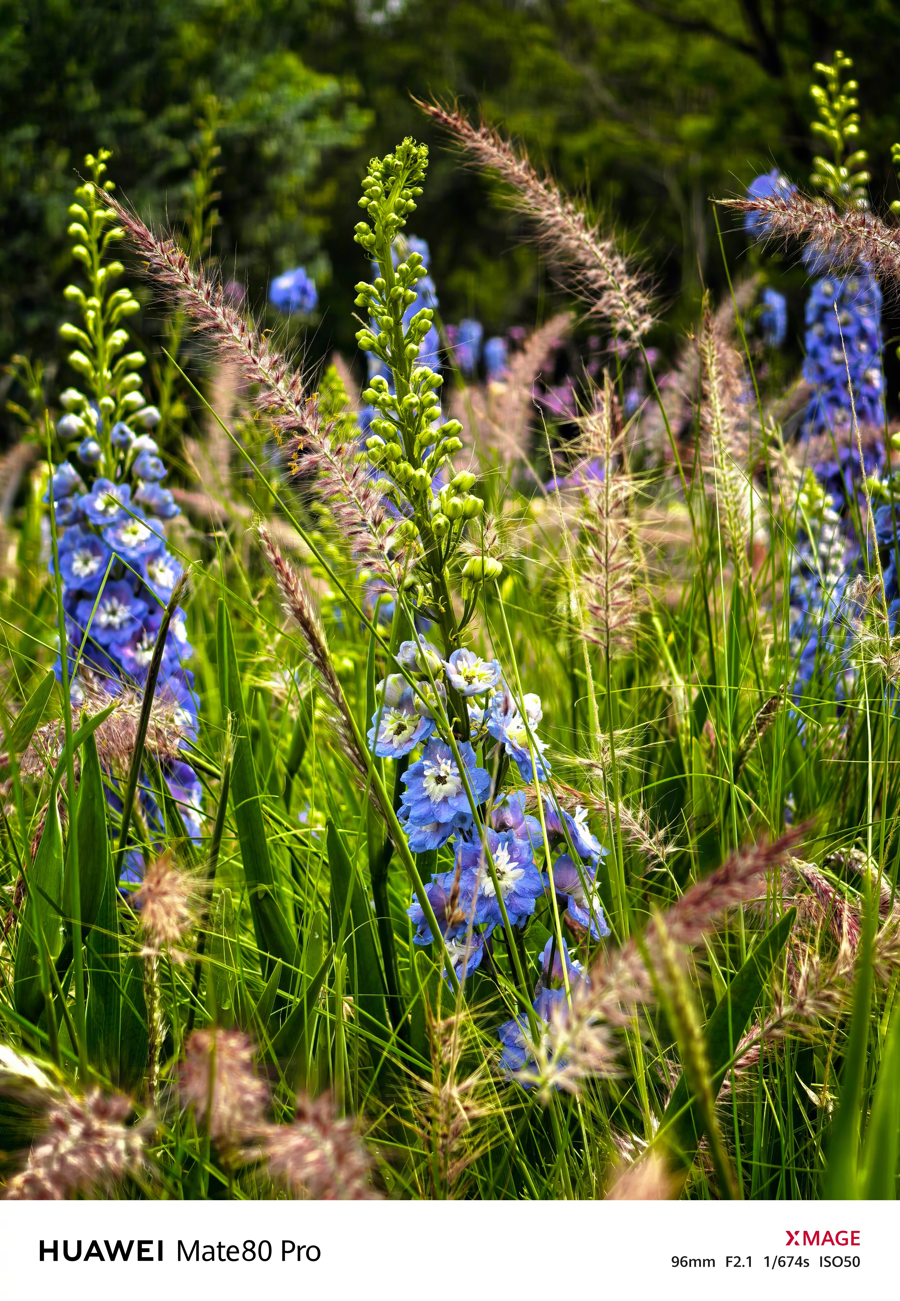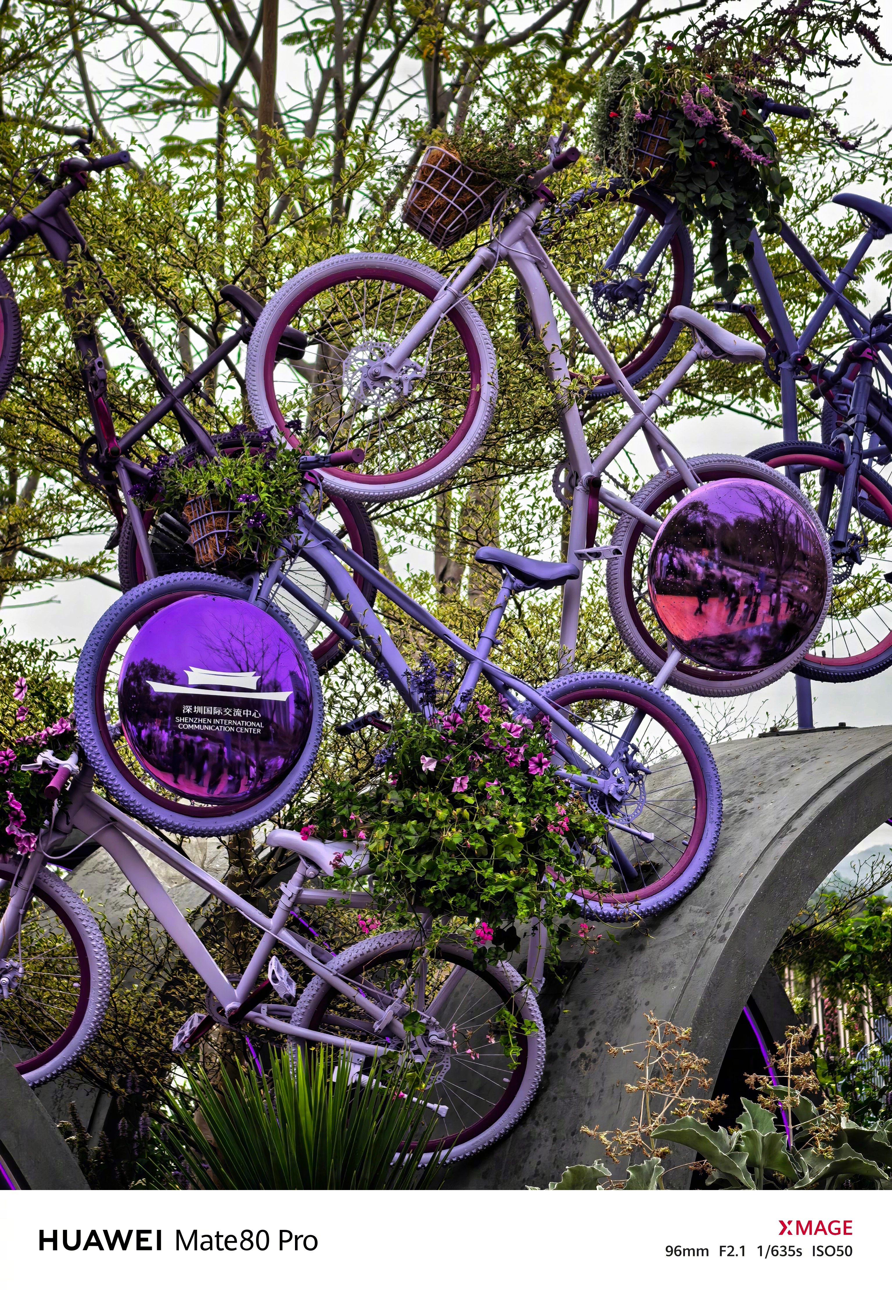 这次我拿华为Mate 80 Pro拍了一路,红枫影像的色彩还原确实很准,面对花展这种色彩特别丰富的场景,蓝紫、橙红、嫩黄这些颜色都能保留住各自的层次,不会互相串色,拍出来很讨喜,但又不会假。在颜色复杂的环境下,白平衡也非常准,花瓣本身那种通透感和现场氛围都能很好地留下来。另外这次我也挺想说说它的4倍长焦。有些花本身没法走太近,或者想拍局部细节的时候,4倍长焦就特别顺手,直接把花瓣纹理、花蕊细节和枝叶层次拉出来,画面干净很多,也更容易拍出“主角感”。