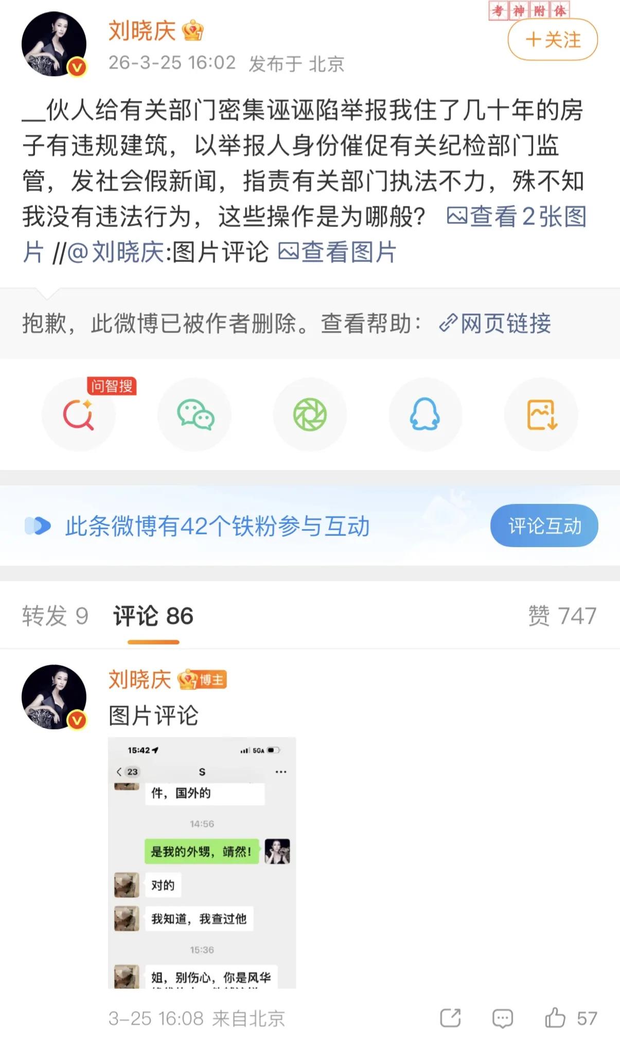 外甥造谣刘晓庆去世,亲妹妹一家希望她没有后代。 3月25日,刘晓庆公开辟谣,直指造谣者是自己抚养长大的外甥靖然,怒斥“本是同根生,相煎何太急”,还指控其长期恶意举.报房产违建,矛盾直指遗产继承问题。 3月26日,靖然及母亲刘晓红委托律师发声明:靖然定居境外,从未注册运营该造谣账号,相关信息与他无关,否认编造谣言、觊觎财产,称铭记刘晓庆帮扶之恩。 不过看刘晓庆之前在综艺上说的,感觉她和妹妹家的关系也不咋滴。刘晓庆对亲妹妹一家很好,外甥靖然出生40天就被她接走抚养,无儿无女的刘晓庆视如己出,送贵族学校、出钱送出国读书,倾尽所有疼爱。 然而,亲妹妹一家却希望刘晓庆没有后代,刘晓庆的前夫陈国军在传记《我和刘晓庆:不得不说的故事》中介绍,刘晓红和靖军不希望刘晓庆有孩子。因为没有孩子,就可以全身心的疼他们的儿子靖然,百年后所有的财产都属于靖然。 妹妹妹夫从中挑拨,把孩子教得理所应当,之后两家人彻底断联。谁也不想自己还健康的时候,遗产被别人惦记吧?