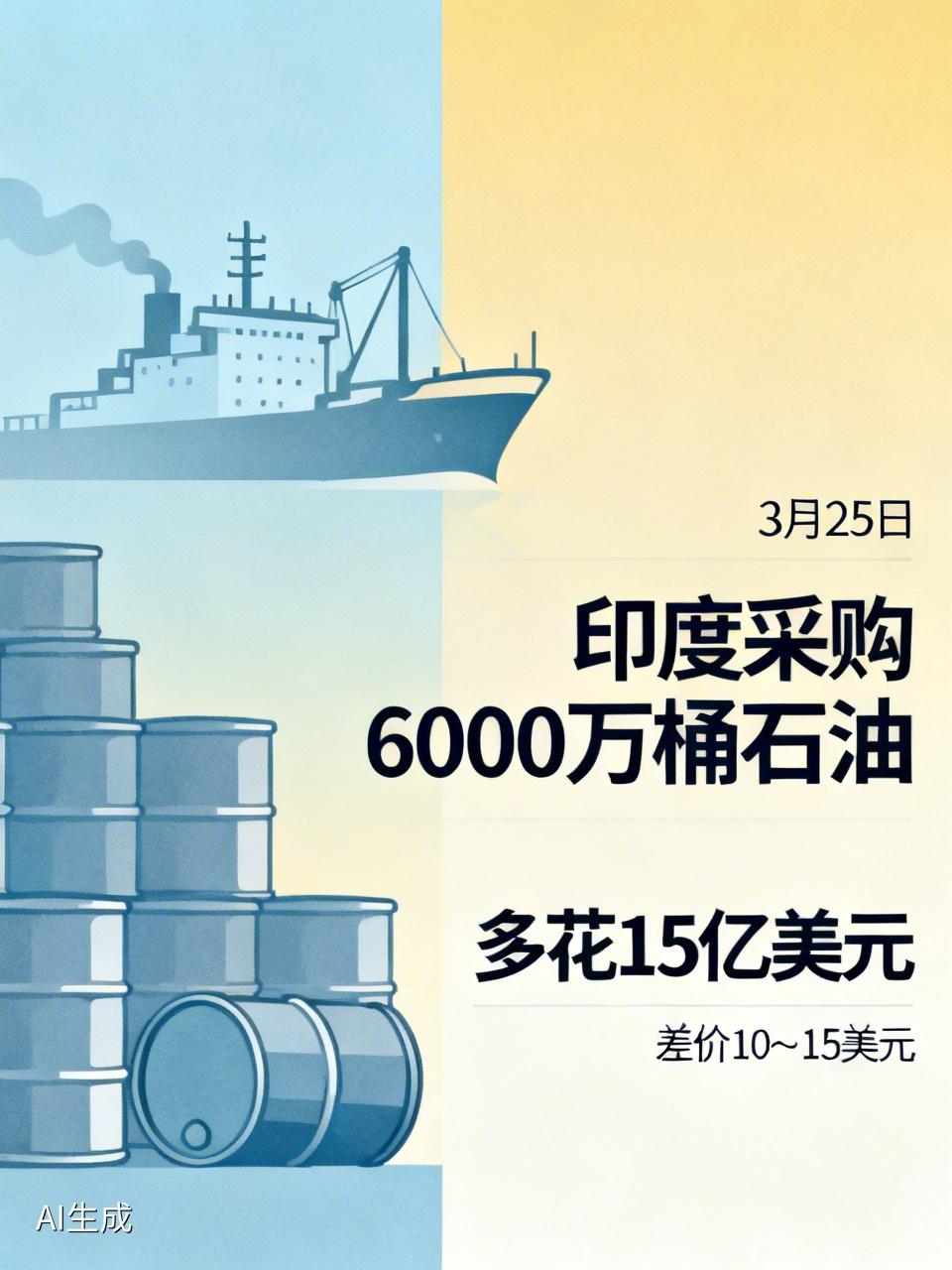 3月25日,印度下单购买6000万桶石油,价格比布伦特高出10~15美元,多花了15亿美元。印度和俄罗斯是长期的盟友,俄乌冲突后印度成了廉价俄油主要买家,价格比市场价低10~15美元,印度疯狂购买俄罗斯石油加工之后再卖给欧洲,赚得盆满钵满。但在美国压力下,印度背叛了俄罗斯,从去年底开始削减俄油采购,转买沙特和伊拉克石油,结果战争让这些石油被困波斯湾。这次美国“放行”,允许买3月12日前海上运输的俄油,印度就大举扫货,但是想再买俄罗斯的便宜石油是不可能了。