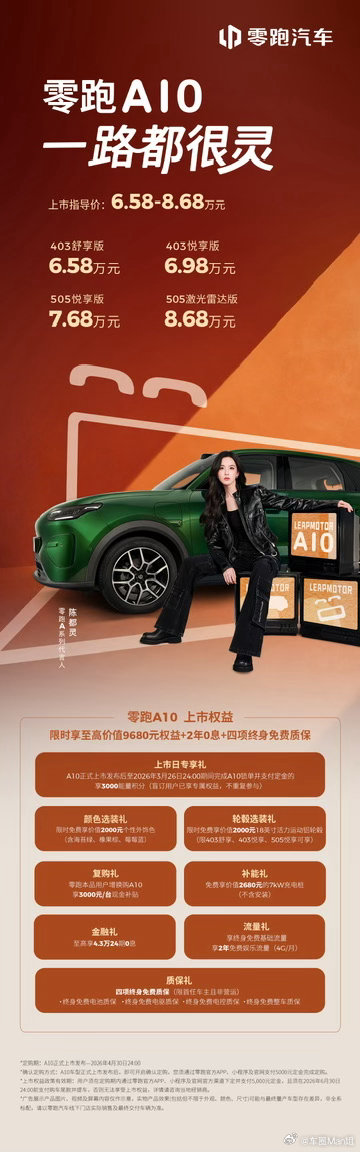 有人说零跑是“价格屠夫”,但这背后是全域自研的硬核底气。除了击穿地板的定价,上市权益直接拉满:免费7kW充电桩、至高4.3万24期0息、四项终身质保,把用户购车的所有顾虑,抹平。陈都灵聊宠物出行太共情了