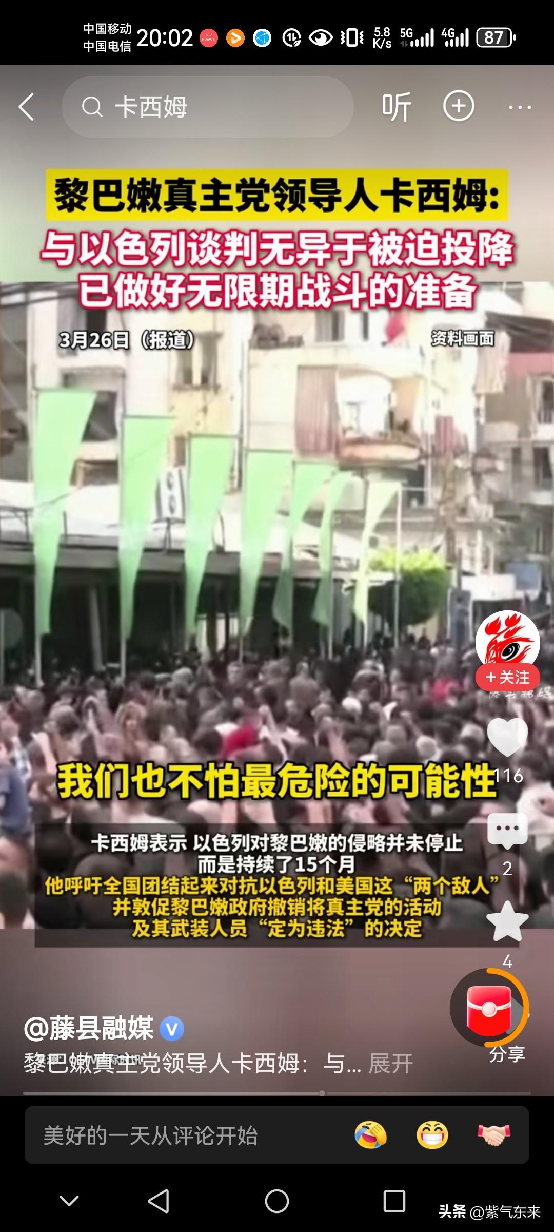 黎巴嫩真主党彻底怒了 真主党领导人卡西姆更是放出狠话 发表强硬声明:与以色列谈判无异于被迫投降,已经做好了持久长期的战斗准备,呼吁黎巴嫩政府当局撤销针对真主党人员和武装行动被定性为违法的决定。以色列从未停止对黎巴嫩的侵略,这种侵略行为已经持续了一年半了! 黎巴嫩真主党好样的,要不是真主党的强硬抵抗,黎巴嫩领土早就被以色列步步蚕食了! 说句不好听的,黎巴嫩当局应该好好感谢真主党在前线的奋勇抵抗和英勇表现! 巴勒斯坦就是很好的例子,对待以色列越是示弱,就越容易被无情消灭!黎巴嫩真主党 卡西姆