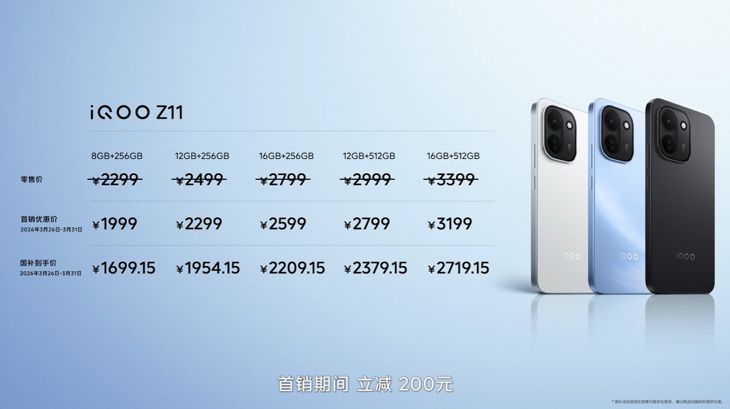 iQOOZ11发布,定位是iQOOZ10Turbo的升级版,首销减