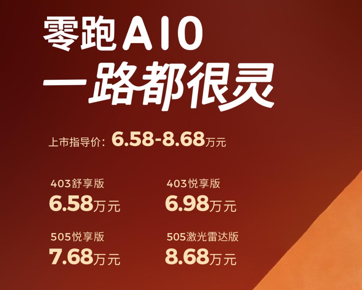 零跑A10度上市价格出来了,一共四个价格 403舒享版6.58万元 403悦享版6.98万元 505悦享版7.68万元 505激光雷达版8.68万元 比我想象中贵了一点点,目前并不是全系标配激光雷达,6.58w的入门版如果6.38万元的话,会不会更猛一点,不过505激光雷达版不到9万,打入十万价格区间,确认还要什么自行车,但我还是想问,没有无线充电,是因为这个成本很高吗?【来自懂车帝车友圈】
