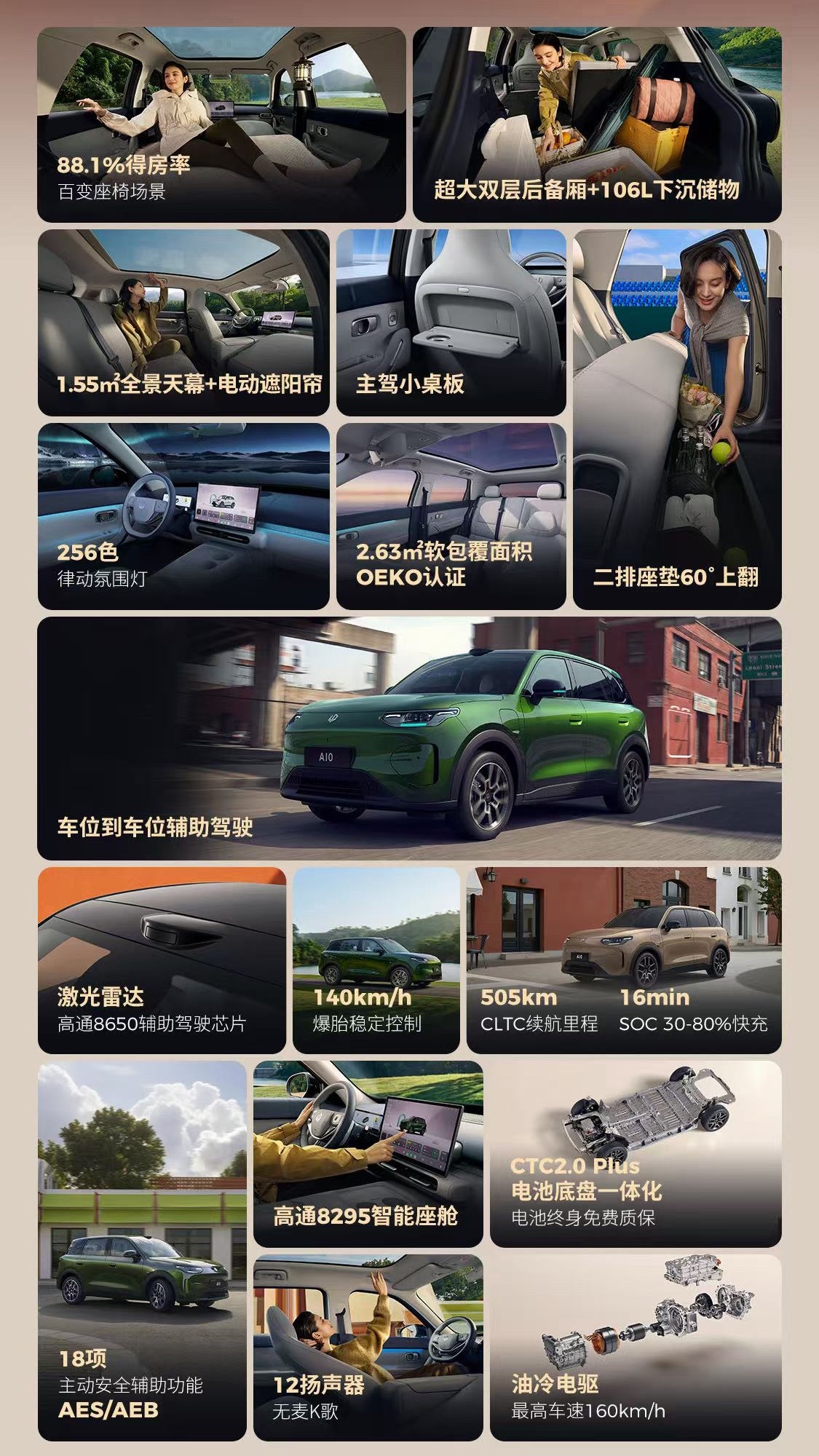 ✅ 超大空间:4270×1810×1635mm车身+2605mm轴距,88.1%超高得房率!行业首创106L可冲洗下沉储物舱,后备箱基础容积602L,放倒后拓展至1549L,家庭出行轻松装!