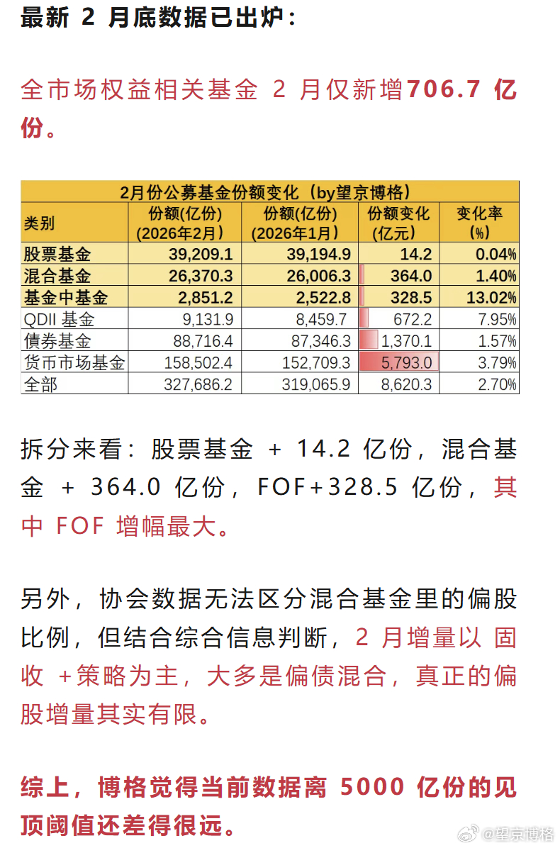 另外,协会数据无法区分混合基金里的偏股比例,但结合综合信息判断,2 月增量以 固收 +策略为主,大多是偏债混合,真正的偏股增量其实有限。